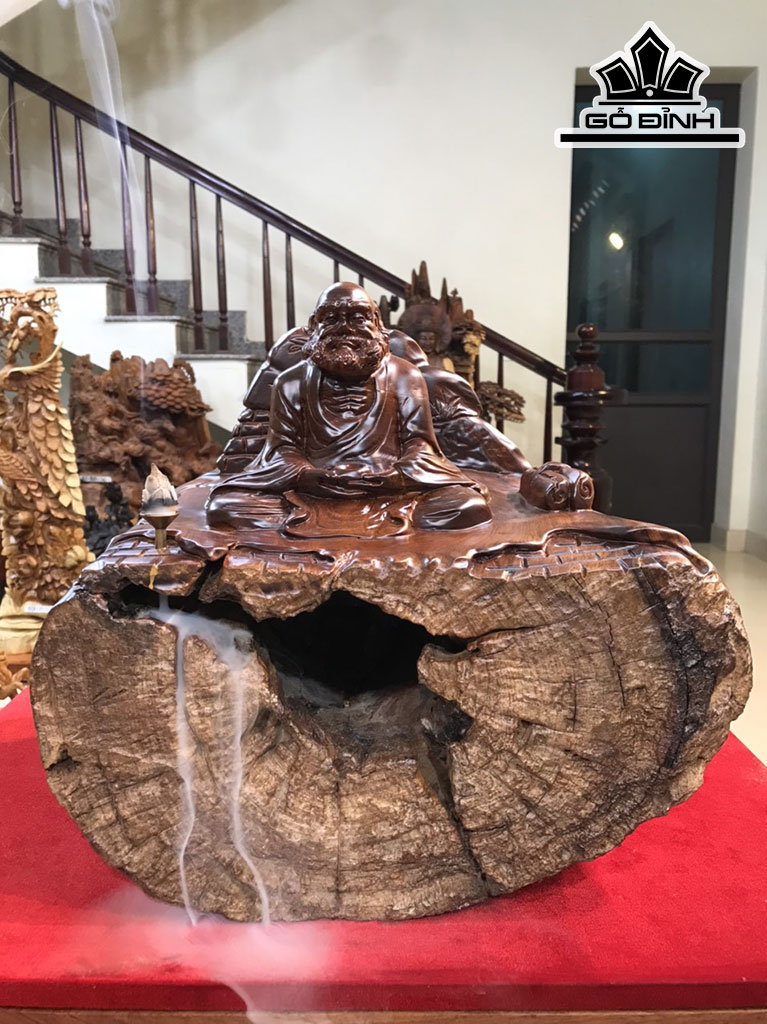 Tượng Đạt Ma Gỗ Lũa Cẩm Cao 33 Ngang 40 Sâu 29 (cm)