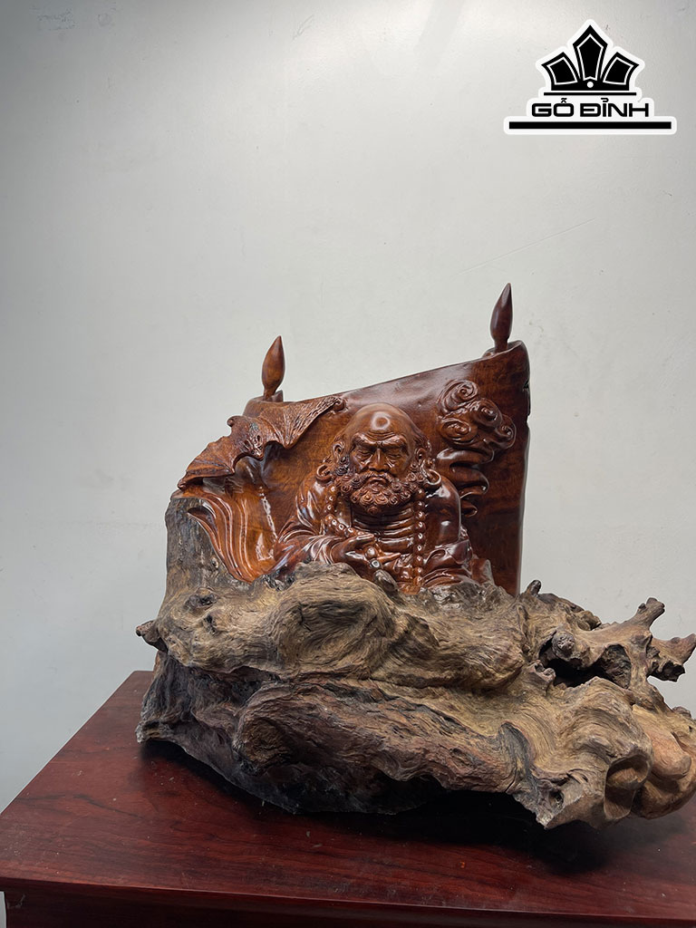 Tượng Đạt Ma Gỗ Lũa Sụn Hương Cao 37 Ngang 41 Sâu 34 (cm)