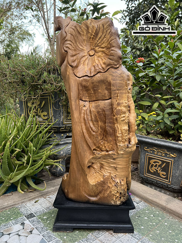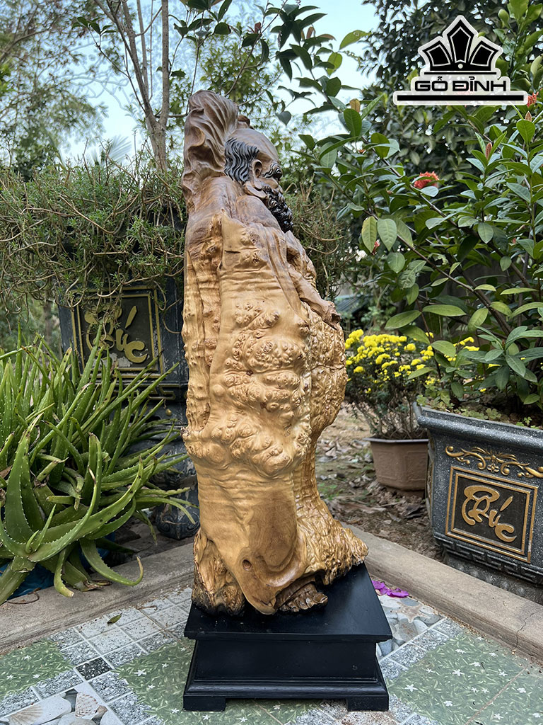 Tượng Đạt Ma Gỗ Nu Dổi Cao 68 Ngang 28 Sâu 25 (cm)