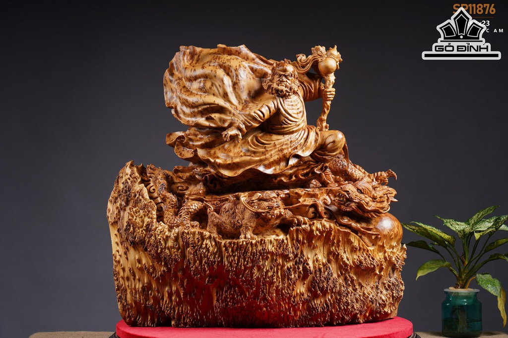 Tượng Đạt Ma Gỗ Nu Ngọc Am Cao 65 Ngang 68 Sâu 23 (cm)
