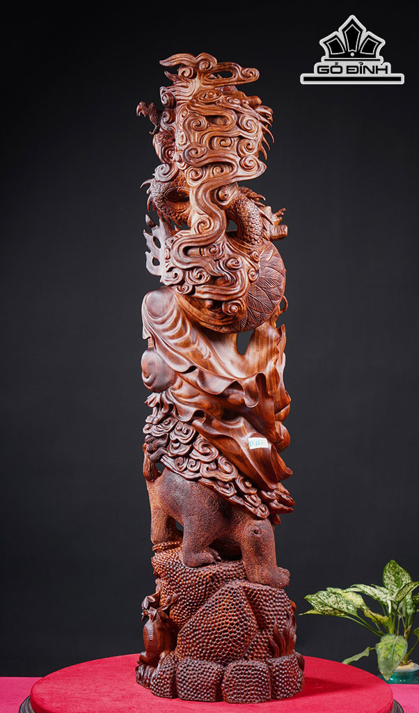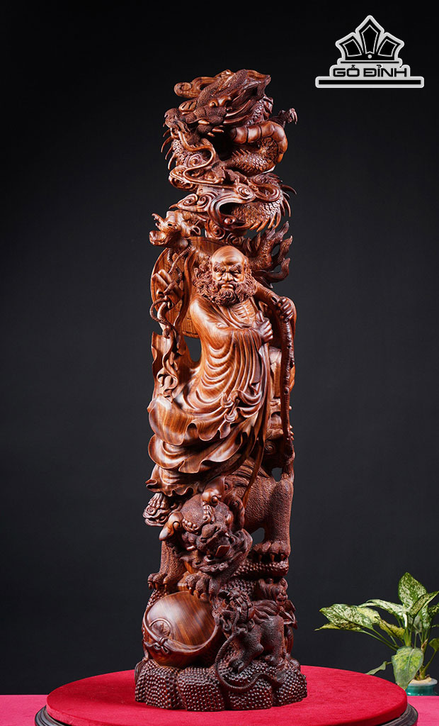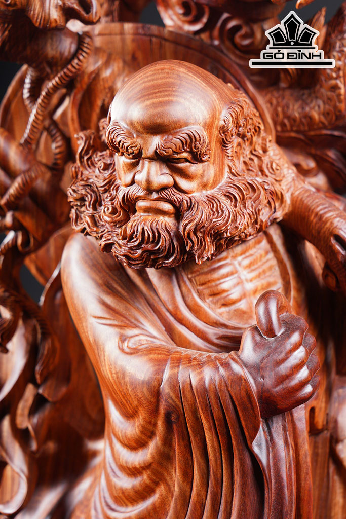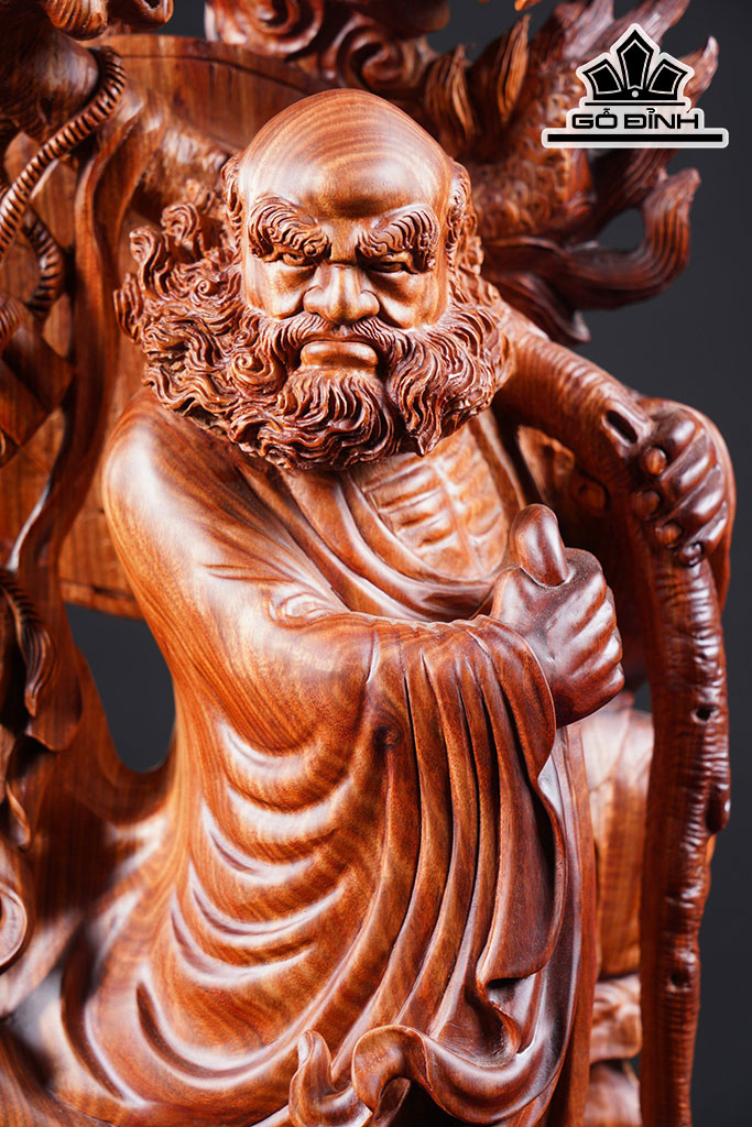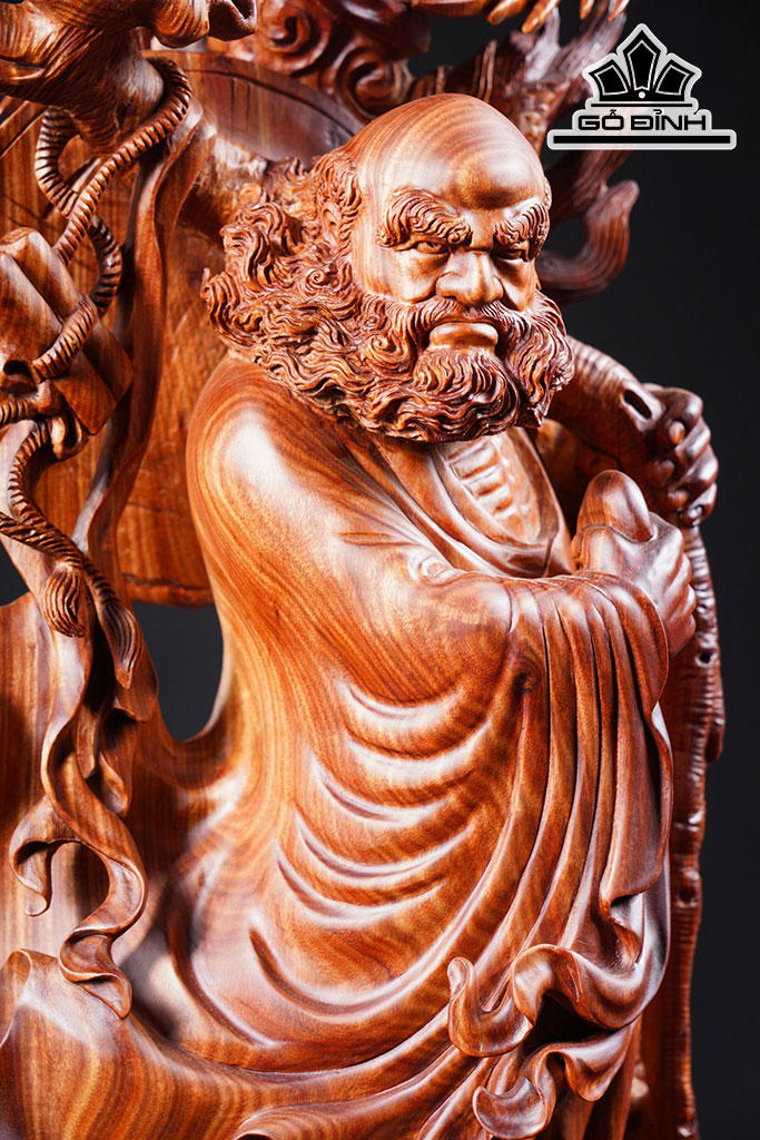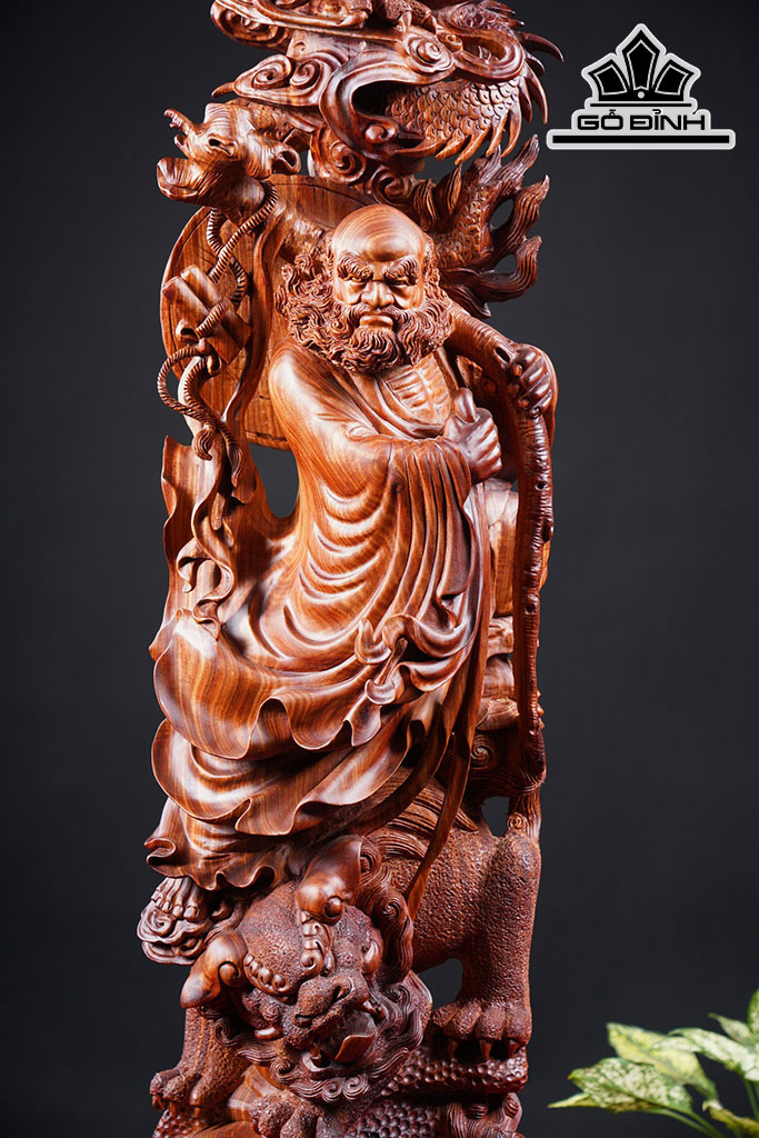 Tượng Đạt Ma Hàng Long Chấn Nghê Gỗ Tử Đàn Cao 119 Ngang 31 Sâu 27 (cm)