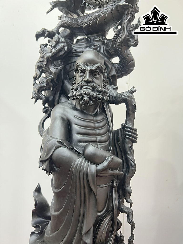 Tượng Đạt Ma Hàng Long Gỗ Mun Sừng Cao 115 Ngang 30 Sâu 25 (cm)