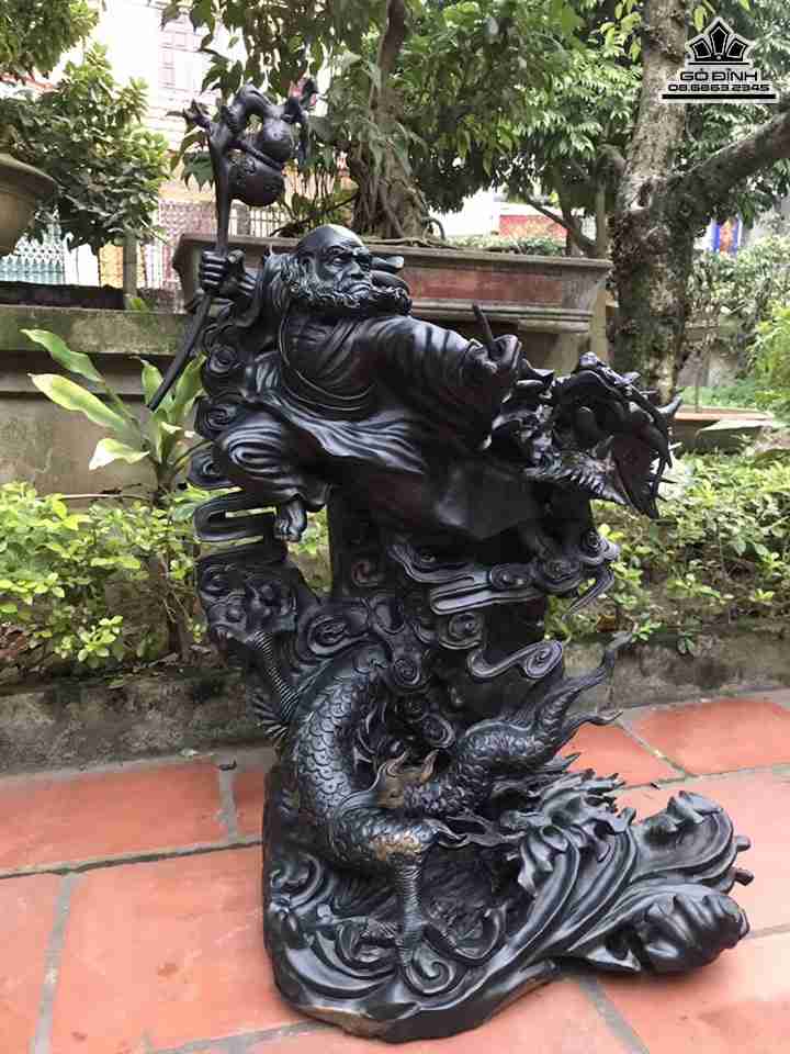 Tượng Đạt Ma Hàng Long Gỗ Mun Sừng Cao 65 Ngang 50 Sâu 40 (cm)