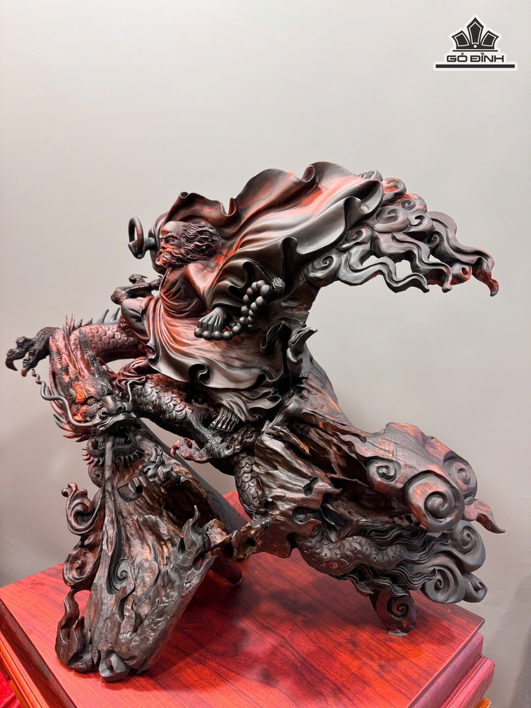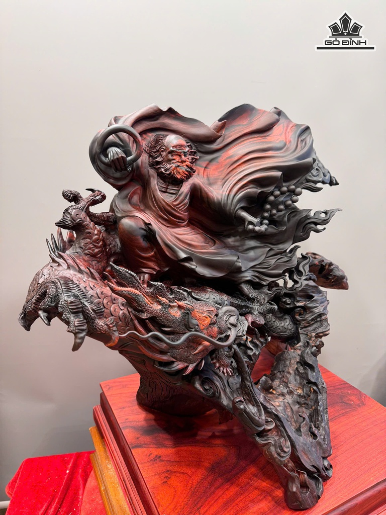 Tượng Đạt Ma Hàng Long Gỗ Trắc Cao Cả Kỷ 63 Ngang 60 Sâu 38 (cm) - Kỷ Cao 9 (cm)