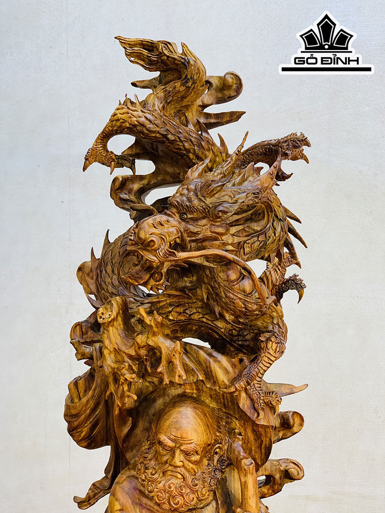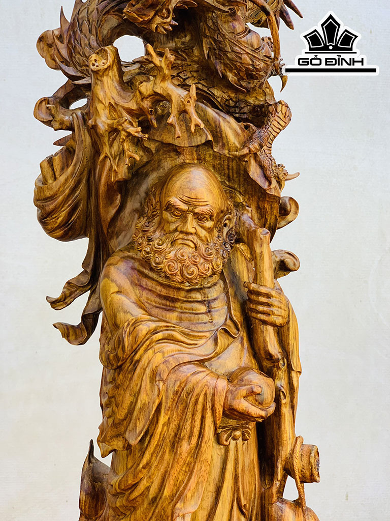 Tượng Đạt Ma Hàng Long Phục Lân Gỗ Sưa Cao 88 Ngang 36 Sâu 27 (cm)