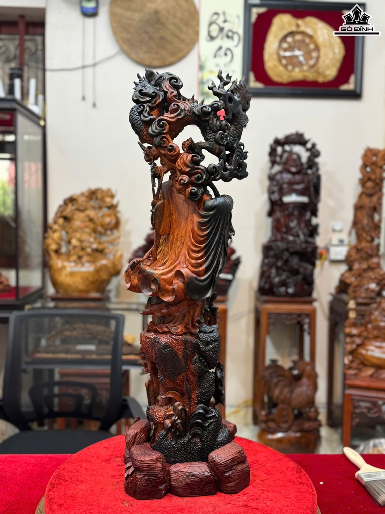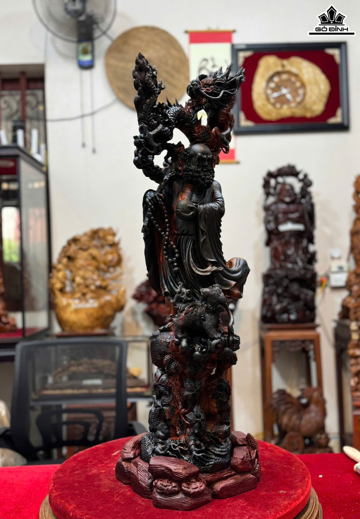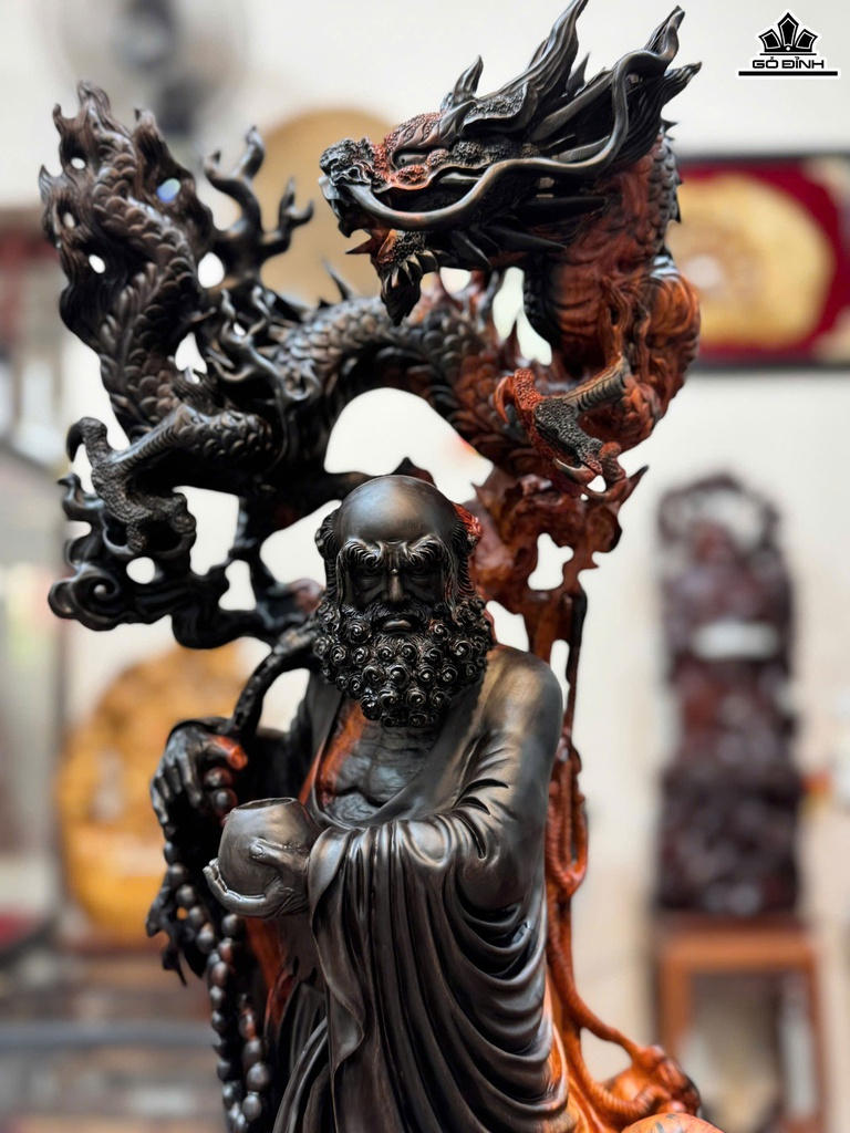 Tượng Đạt Ma Hàng Long Phục Lân Gỗ Trắc Cao 79 Ngang 24 Sâu 21 (cm)