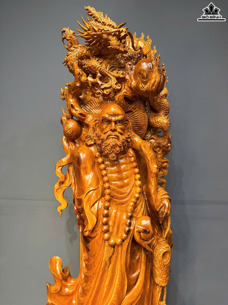 Tượng Đạt Ma Hàng Long Phục Nghê Gỗ Ngọc Am Cao Cả Kỷ 220 Ngang 72 Sâu 40 (cm) - Kỷ Cao 30 (cm)