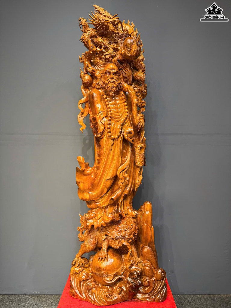 Tượng Đạt Ma Hàng Long Phục Nghê Gỗ Ngọc Am Cao Cả Kỷ 220 Ngang 72 Sâu 40 (cm) - Kỷ Cao 30 (cm)