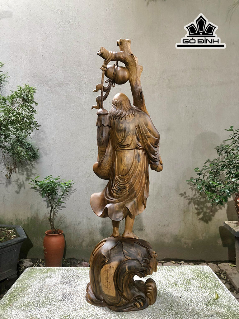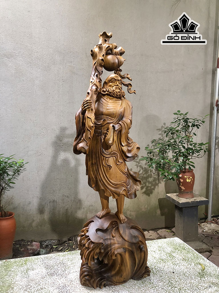 Tượng Đạt Ma Khất Thực Gỗ Bách Xanh Cao 128 Ngang 36 Sâu 26 (cm)