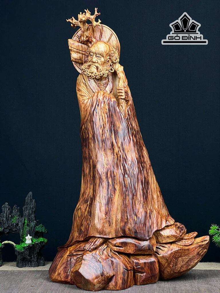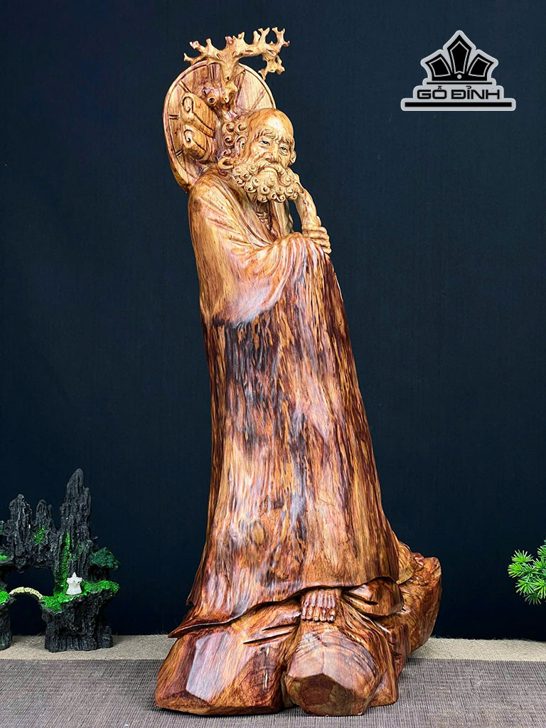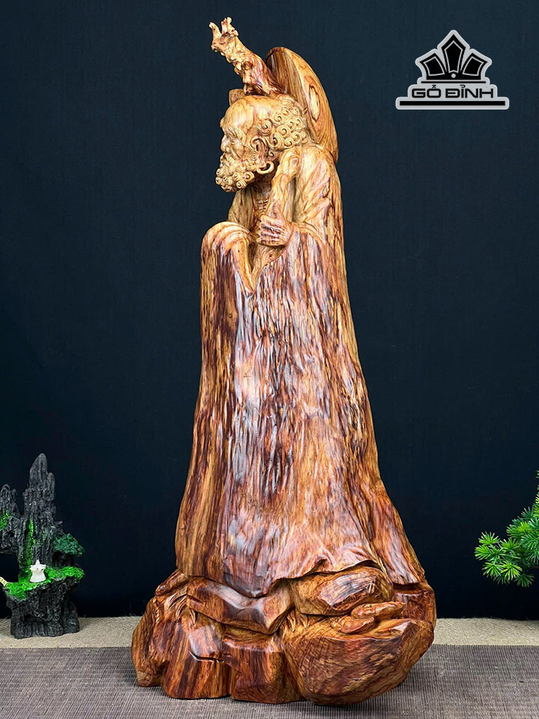 Tượng Đạt Ma Khất Thực Gỗ Nu Sưa Cao 56 Ngang 33 Sâu 23 (cm)