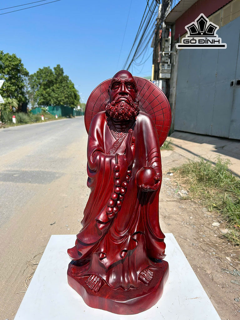 Tượng Đạt Ma Khất Thực Gỗ Tử Đàn Cao 60 Ngang 31 Sâu 21 (cm)