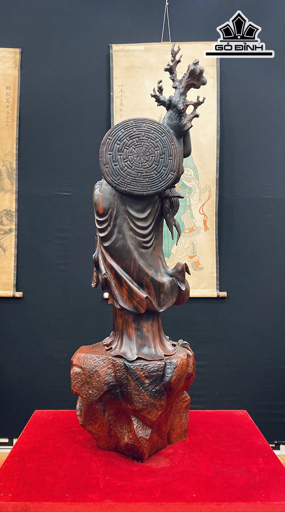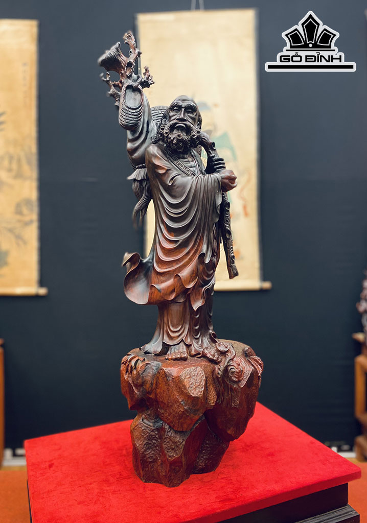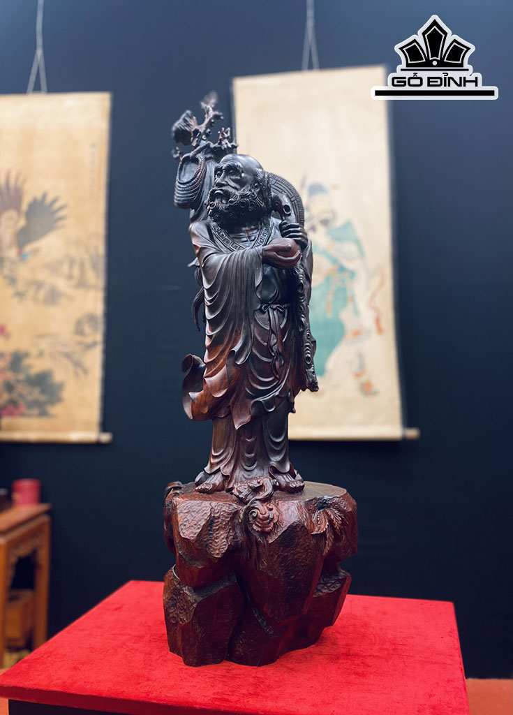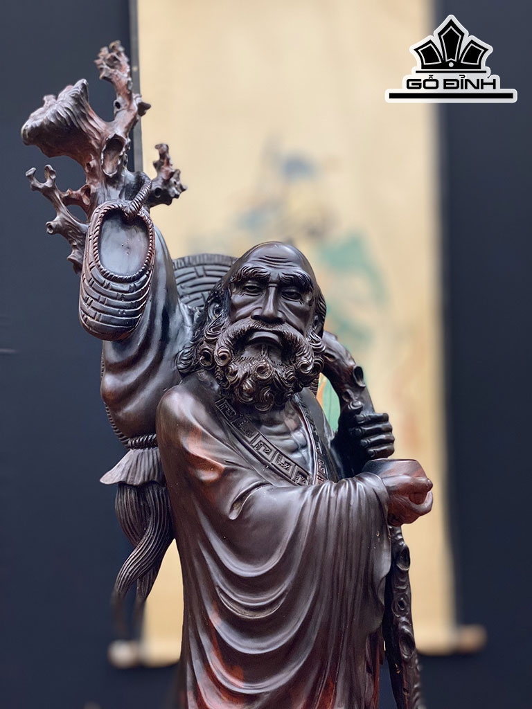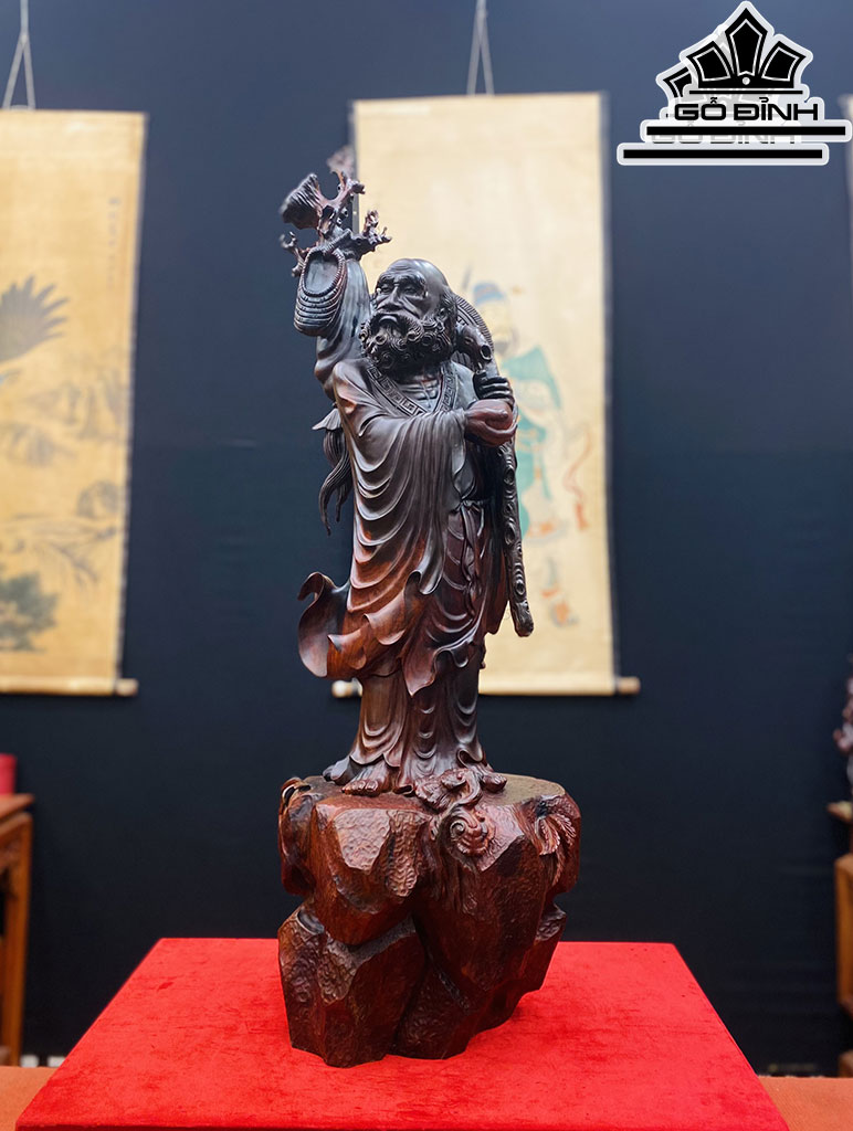 Tượng Đạt Ma Khuất Thực Gỗ Trắc Cao 90 Ngang 30 Sâu 26 (cm)