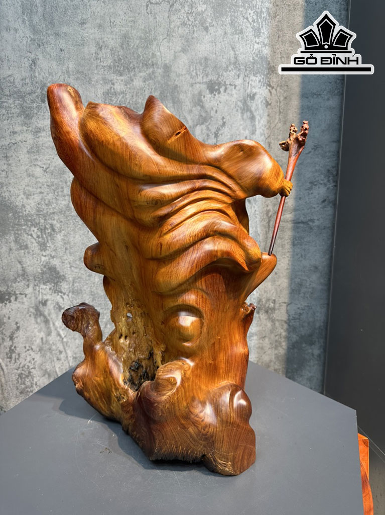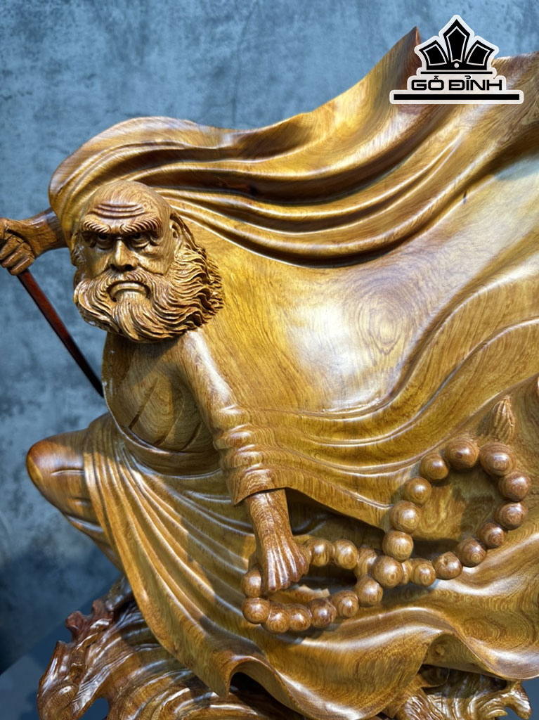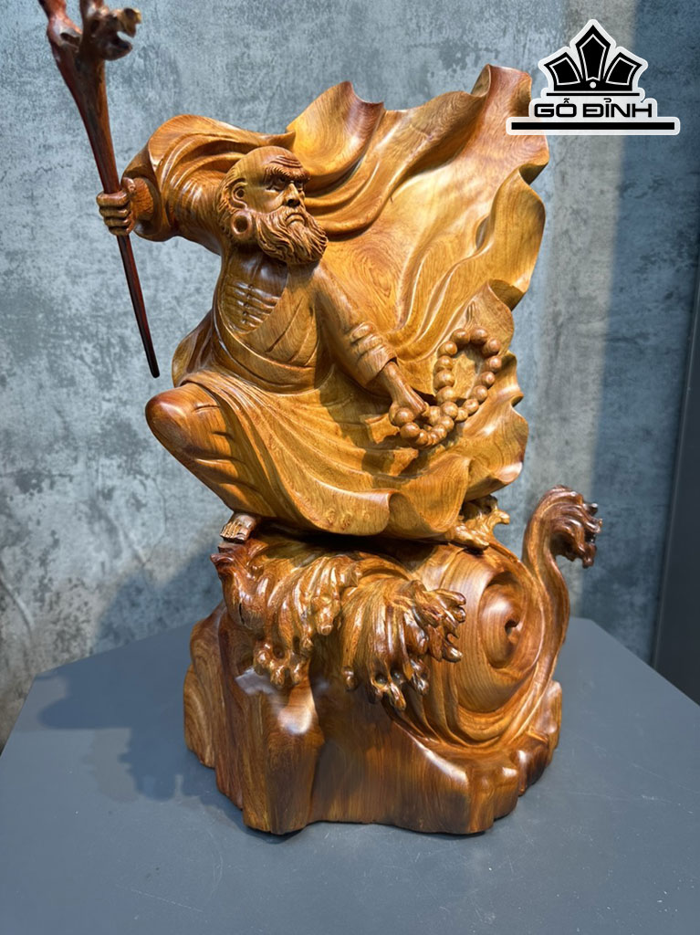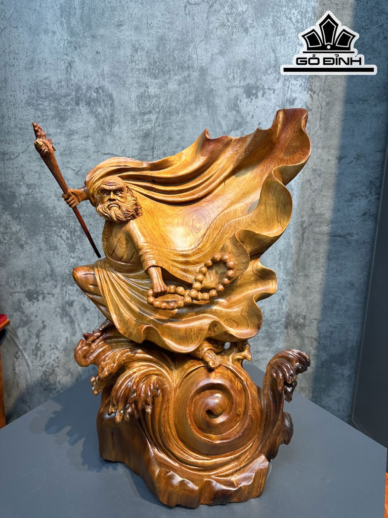 Tượng Đạt Ma Múa Võ Gỗ Hương Cao 54 Ngang 35 Sâu 26 (cm)