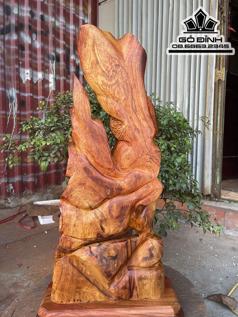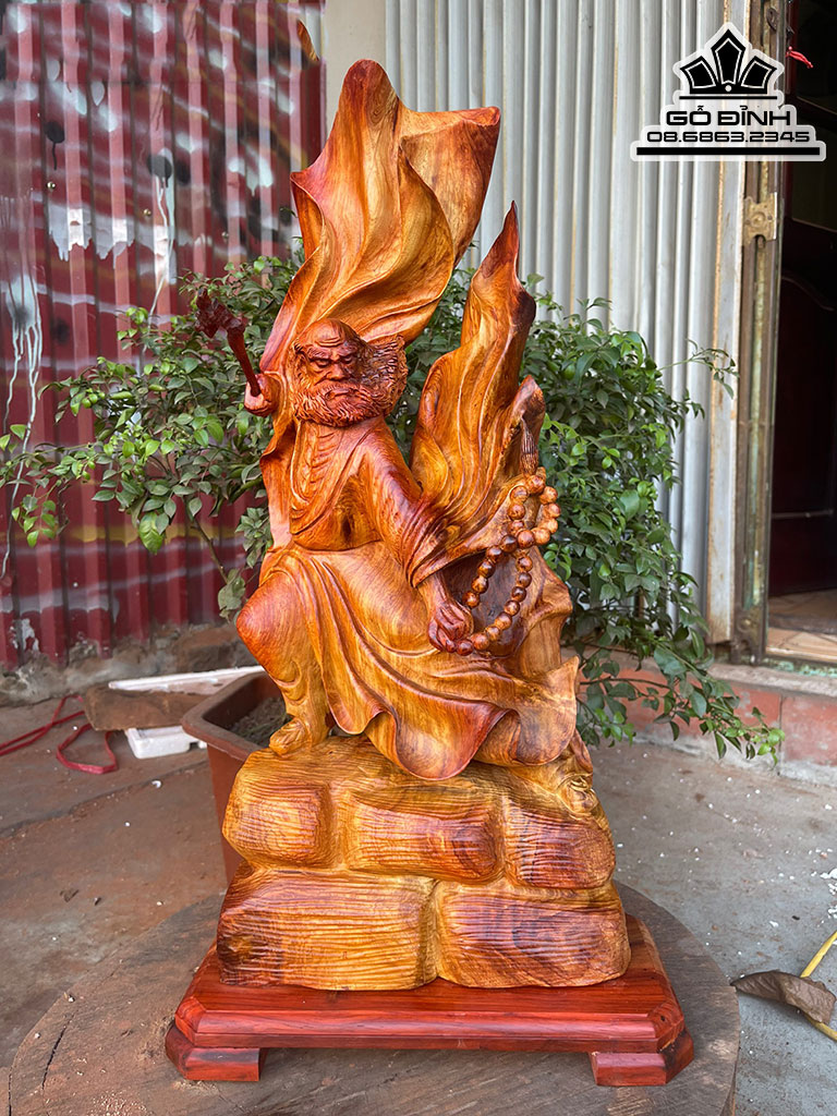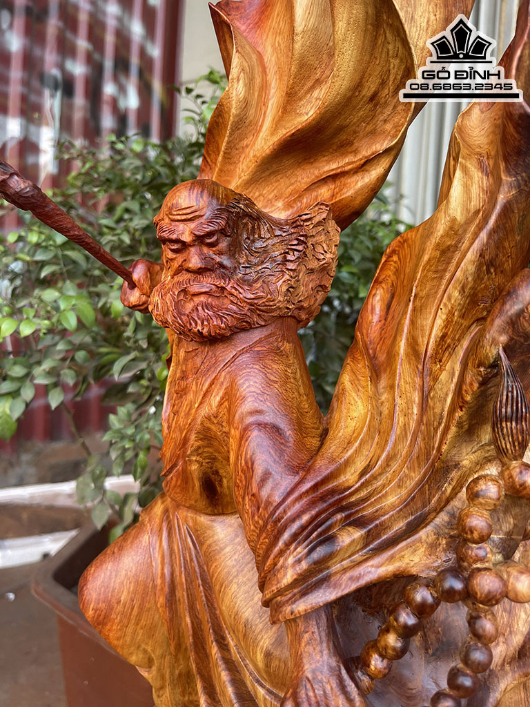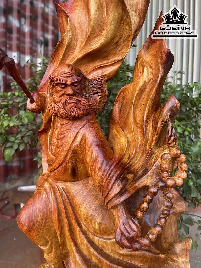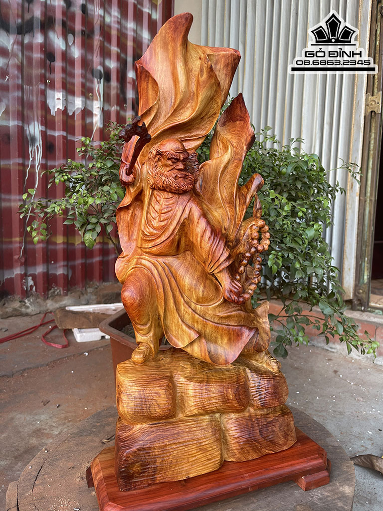 Tượng Đạt Ma Múa Võ Gỗ Hương Việt Nguyên Khối Cao 60 Ngang 27 Sâu 15 Cả Kỷ 65 (cm)