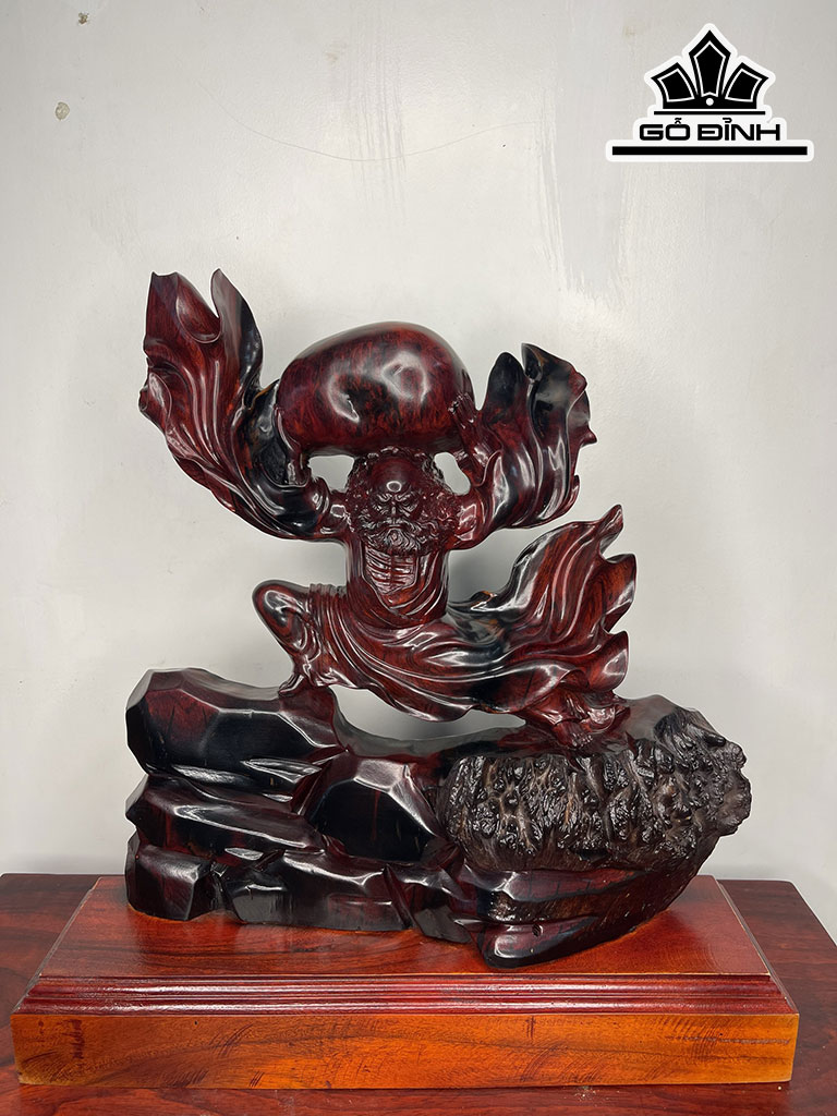 Tượng Đạt Ma Múa Võ Gỗ Nu Trắc Cao 38 Ngang 40 Sâu 12 (cm)