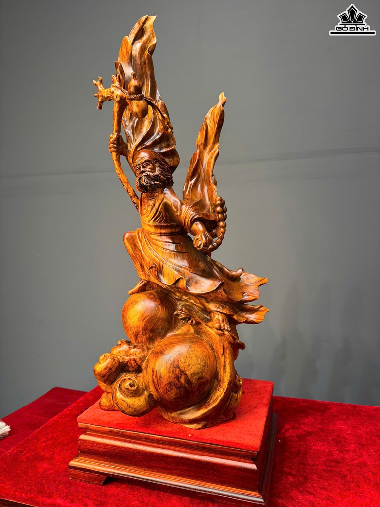 Tượng Đạt Ma Múa Võ Gỗ Sưa Cao Cả Kỷ 83 Ngang 30 Sâu 30 (cm) - Kỷ Cao 10 (cm)