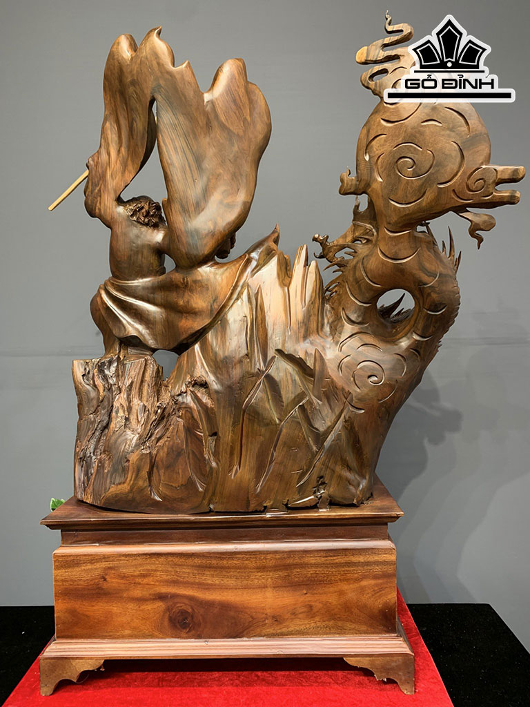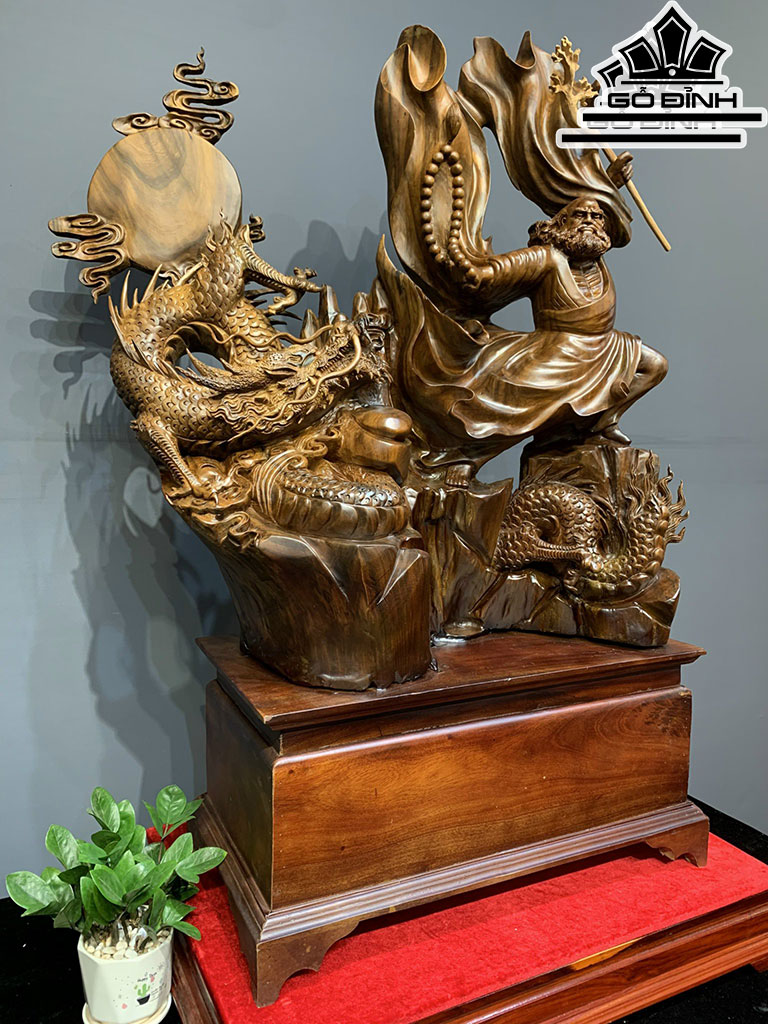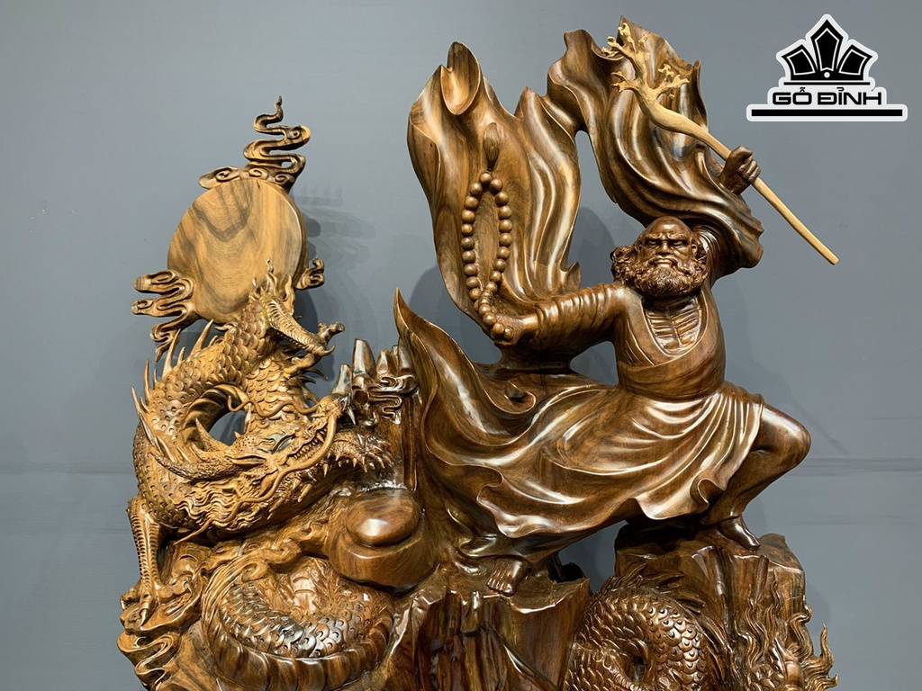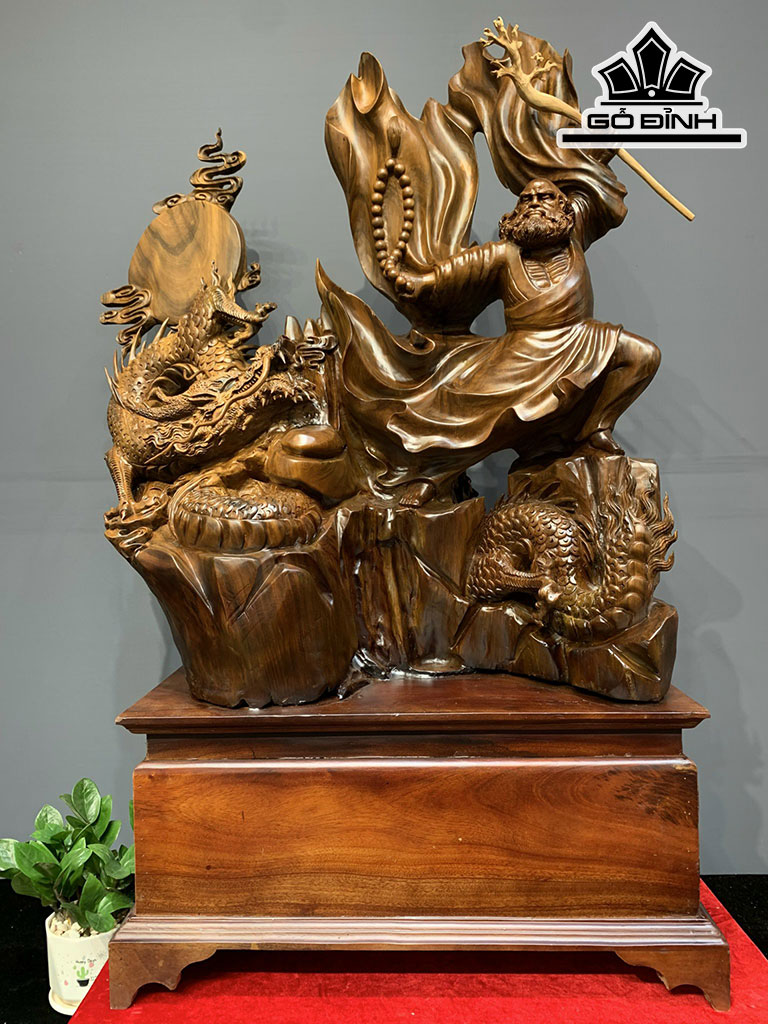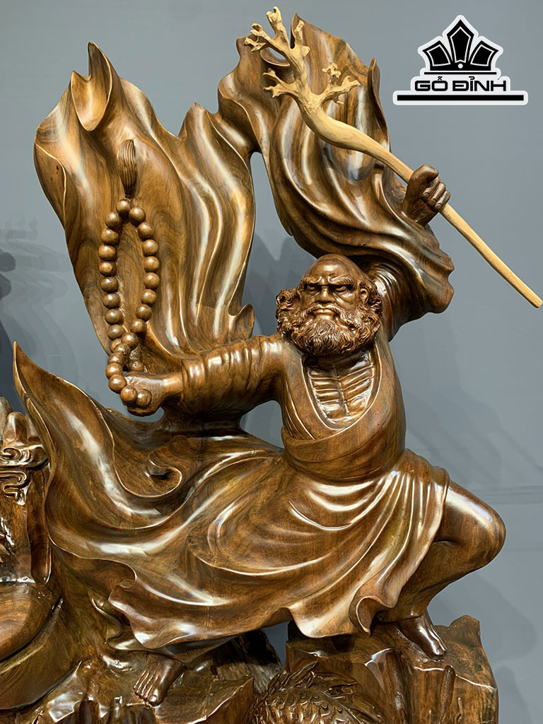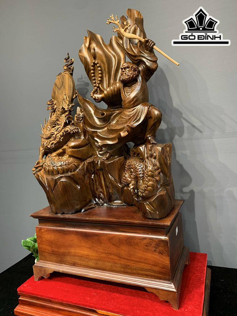 Tượng Đạt Ma Múa Võ Hàng Long Gỗ Bách Xanh Cao 102 Ngang 63 Sâu 40 (cm)
