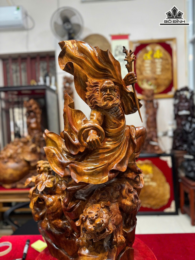 Tượng Đạt Ma Múa Võ Thuần Nghê Gỗ Hương Cao 86 Ngang 50 Sâu 42 (cm)