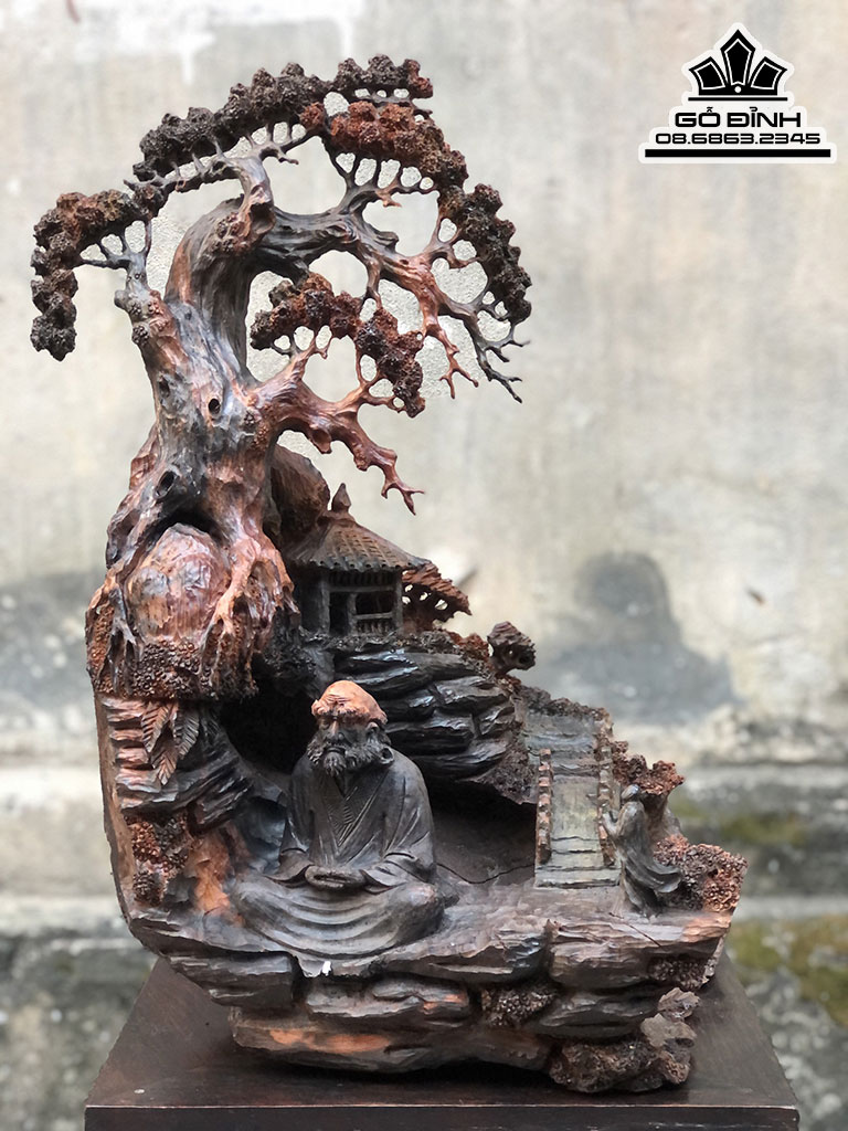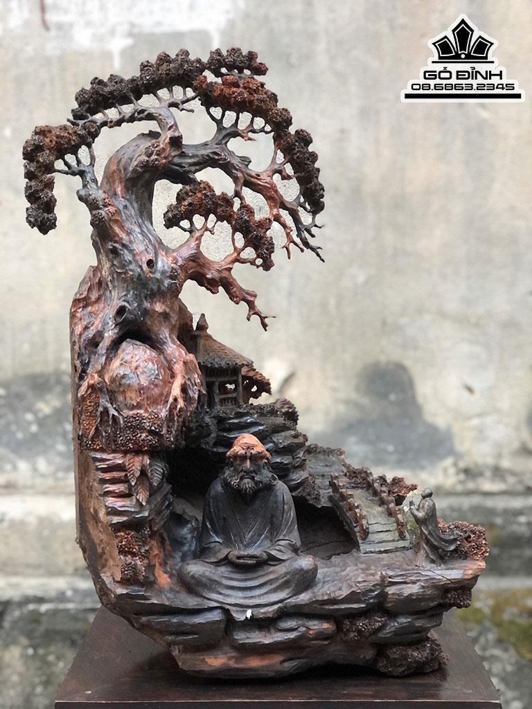 Tượng Đạt Ma Ngồi Gốc Tùng Gỗ Trắc