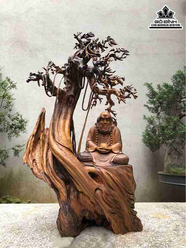 Tượng Đạt Ma Ngồi Thiền Gỗ Bách Xanh Cao 83 Ngang 50 Sâu 30 (cm)