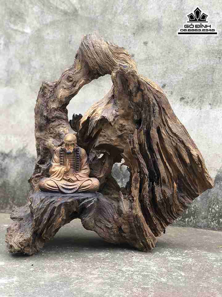 Tượng Đạt Ma Ngồi Thiền Gỗ Lũa Bách Xanh Cao 55 Rộng 52 Dày 22 (cm)