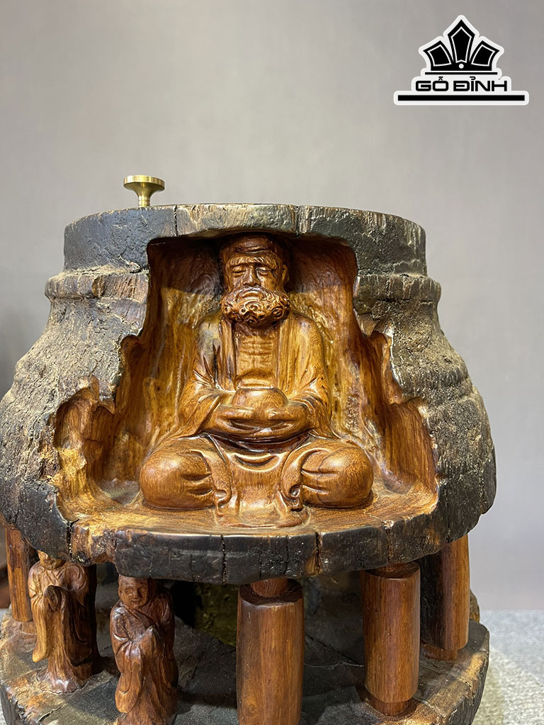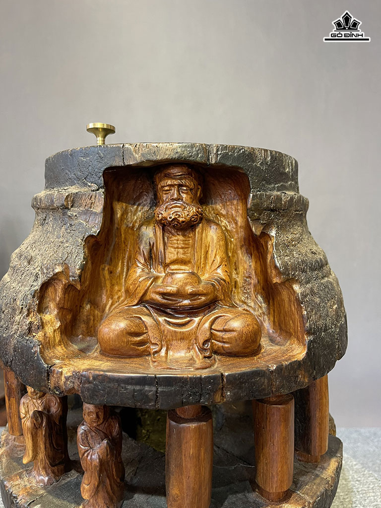 Tượng Đạt Ma Ngồi Thiền Xông Trầm Gỗ Hương Cao 32 Đường Kính 26 (cm)