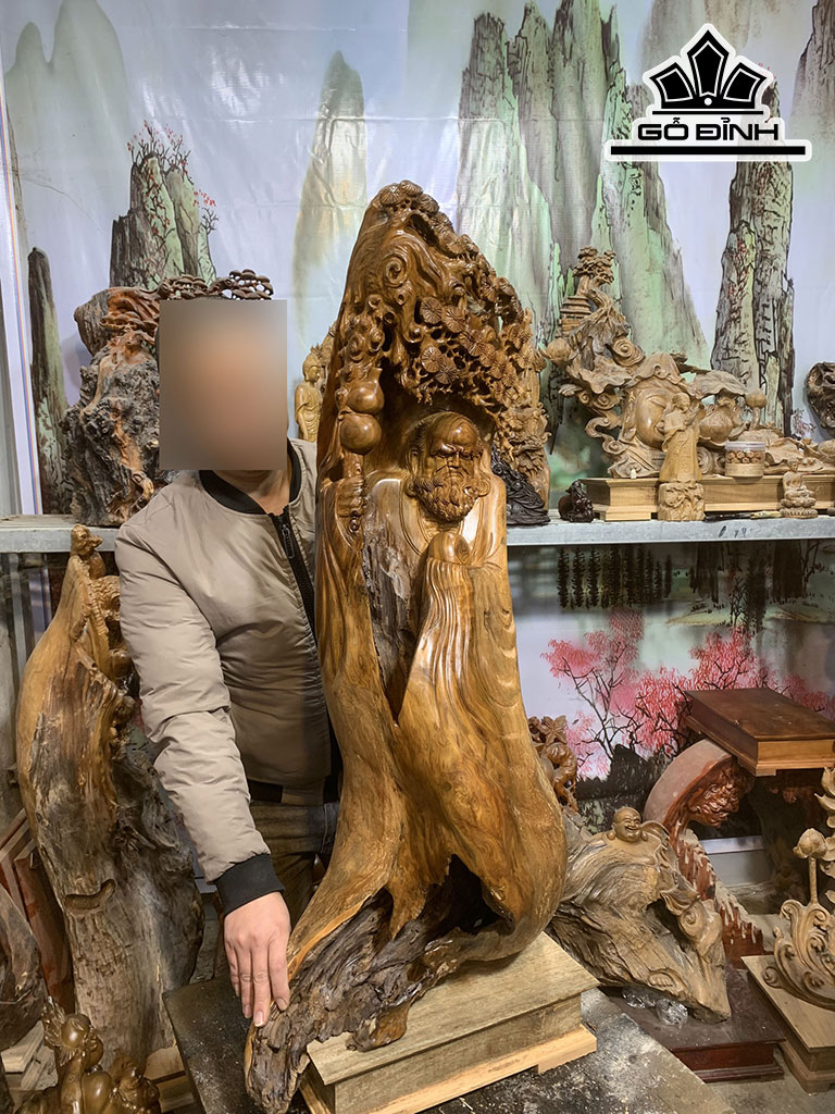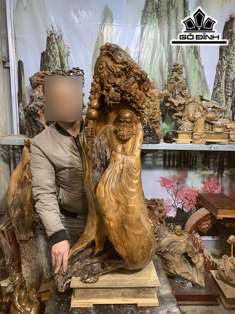 Tượng Đạt Ma Ngự Gốc Tùng Gỗ Bách Xanh Cao Cả Kỷ 113 Ngang 50 Sâu 35 (cm)