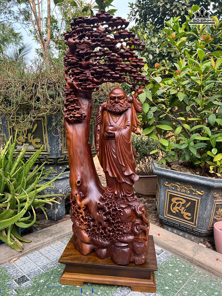 Tượng Đạt Ma Ngự Gốc Tùng Gỗ Ngọc Am Cao 77 Ngang 26 Sâu 20 (cm)