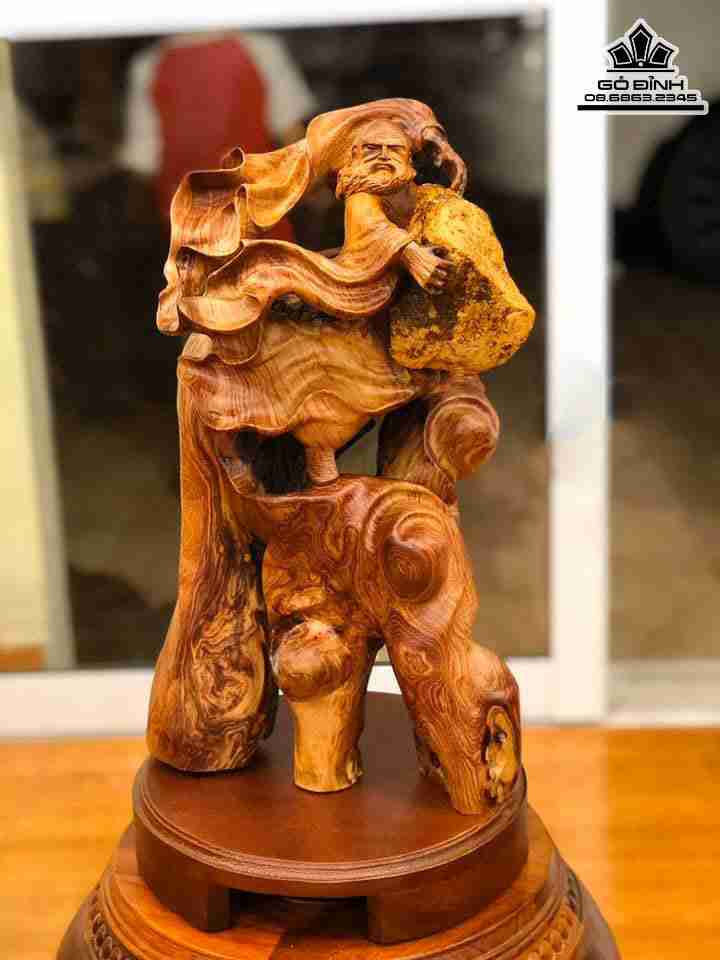 Tượng Đạt Ma Ôm Đá Gỗ Hương Cao 45 Ngang 25 sâu 20 (cm)