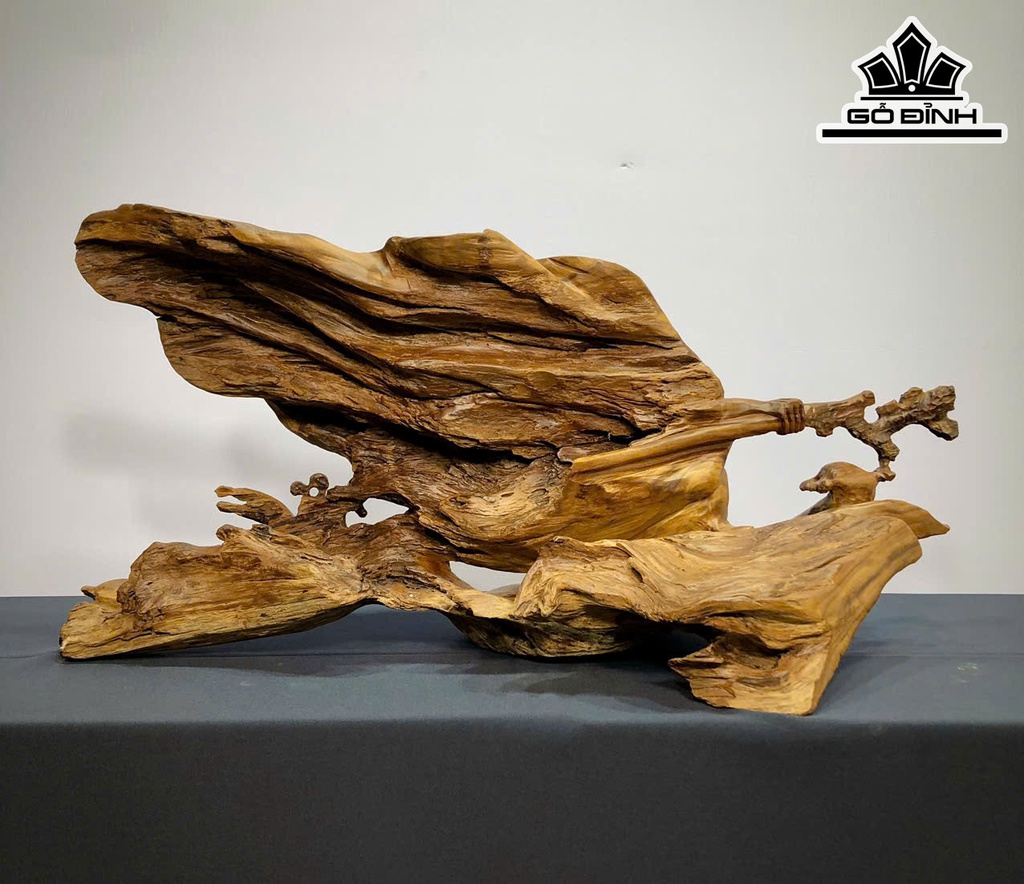 Tượng Đạt Ma Quá Hải Gỗ Bách Xanh Cao 36 Ngang 75 Sâu 28 (cm)