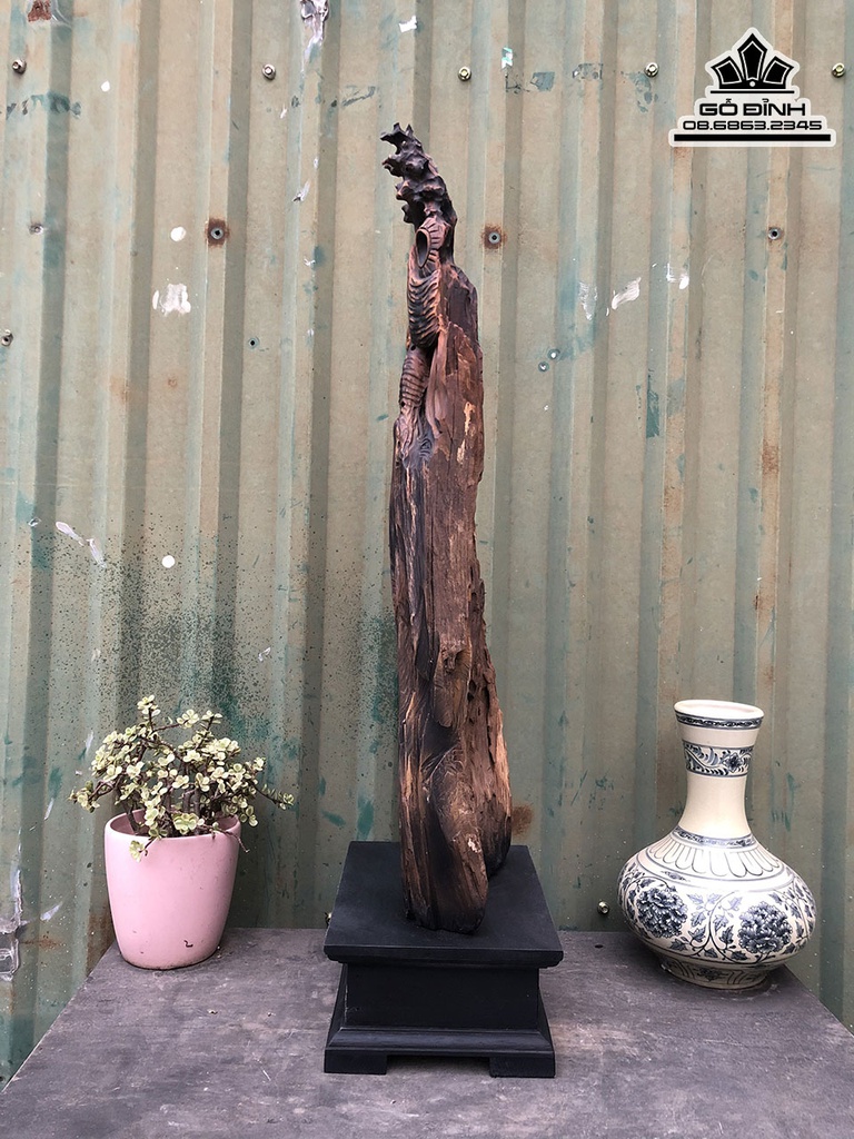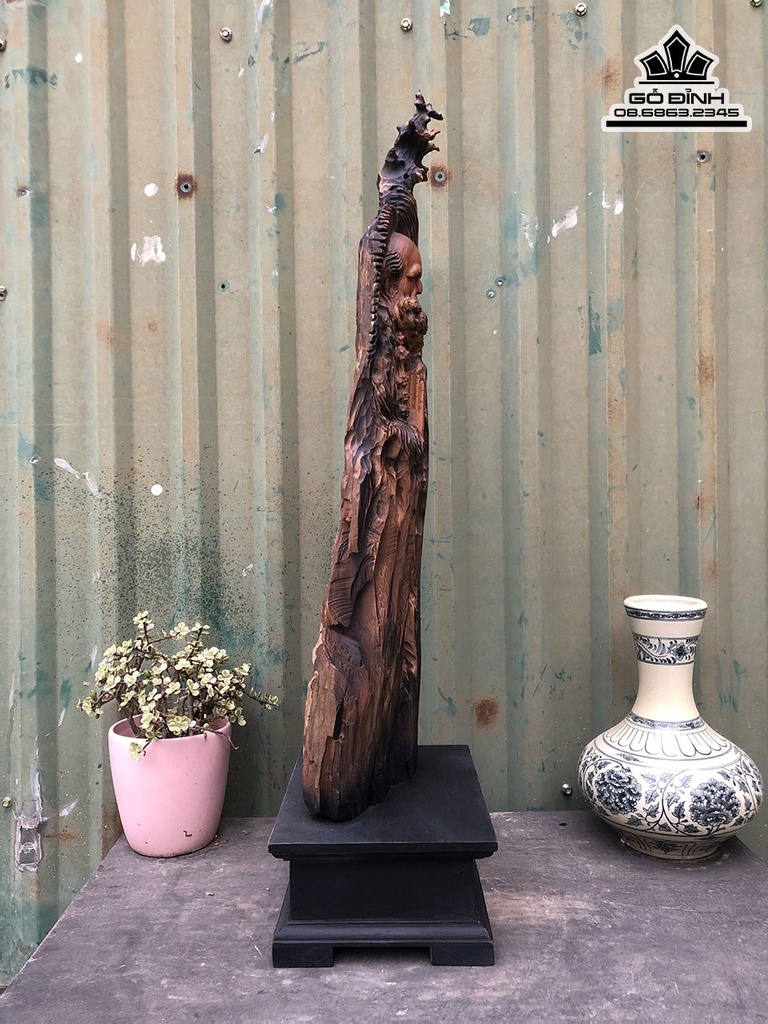 Tượng Đạt Ma Sư Gỗ Bách Xanh Cao 66 Ngang 22 Sâu 10 (cm)