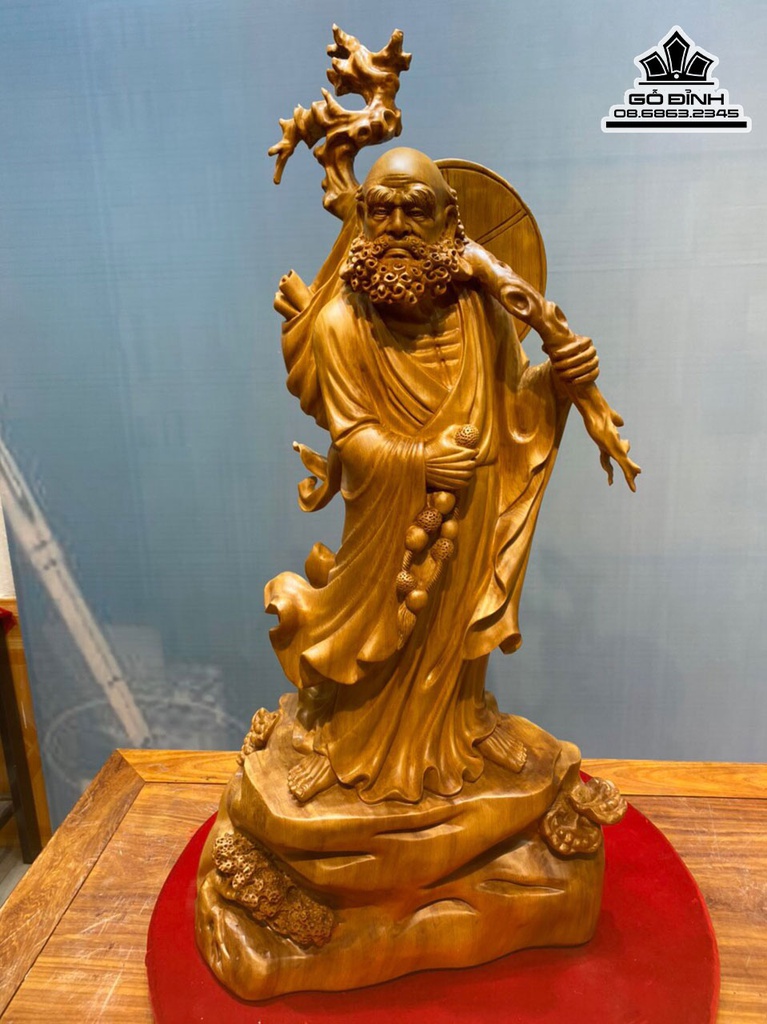 Tượng Đạt Ma Sư Gỗ Ngọc Am Cao 110 Ngang 60 Sâu 30 (cm)