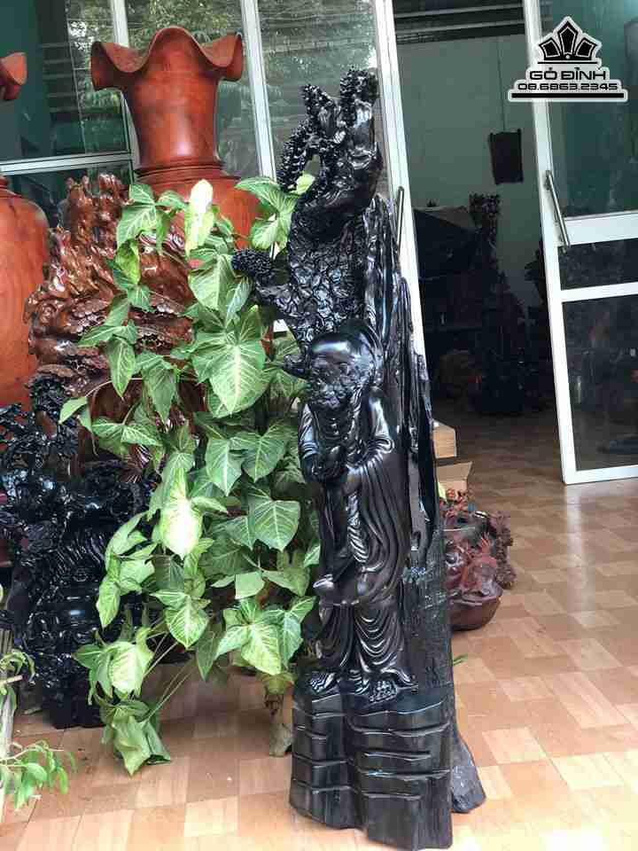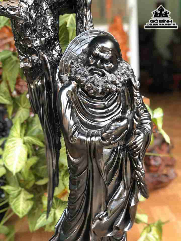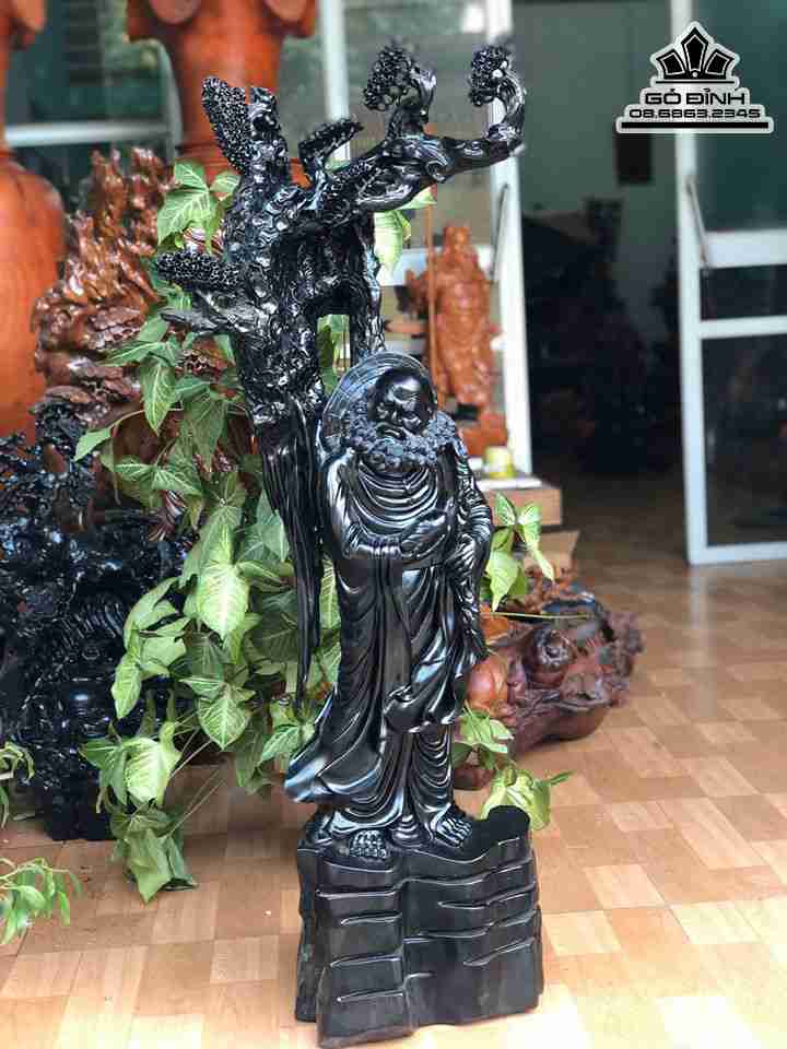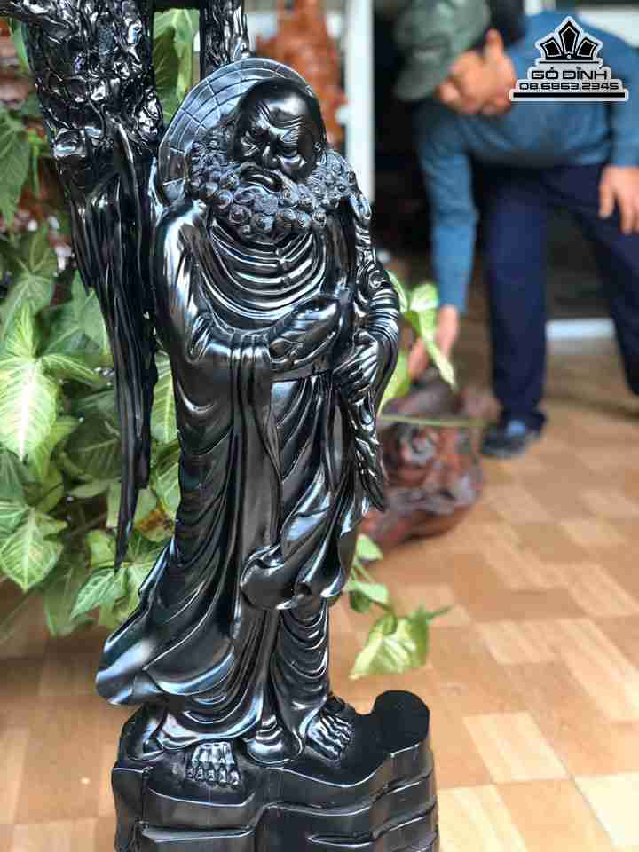 Tượng Đạt Ma Sư Tổ Đứng Gốc Tùng Gỗ Mun Sừng Cao 130 Ngang 45 Sâu 35 (cm)