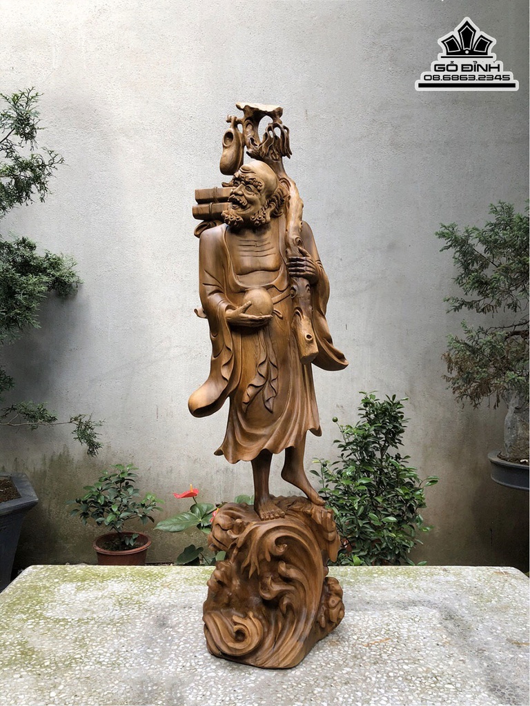 Tượng Đạt Ma Sư Tổ Giáo Hóa Gỗ Bách Xanh Cao 105 Ngang 32 Sâu 25 (cm)