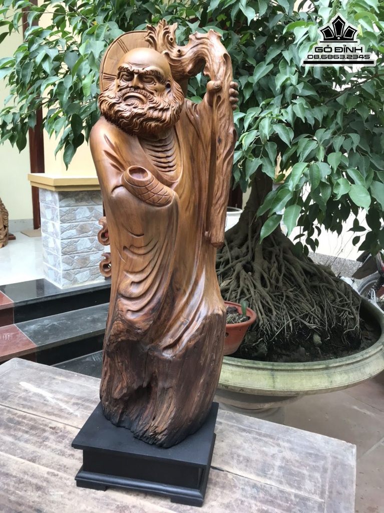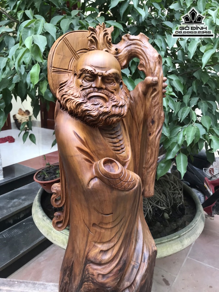 Tượng Đạt Ma Sư Tổ Giáo Hóa Gỗ Bách Xanh Cao 76 Ngang 25 Sâu 20 (cm)