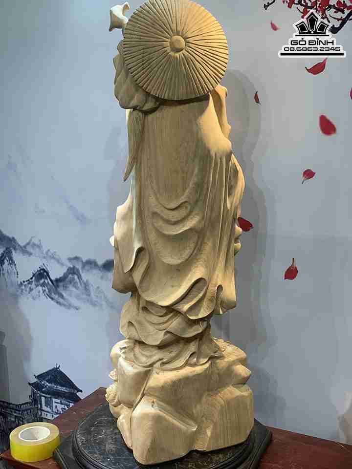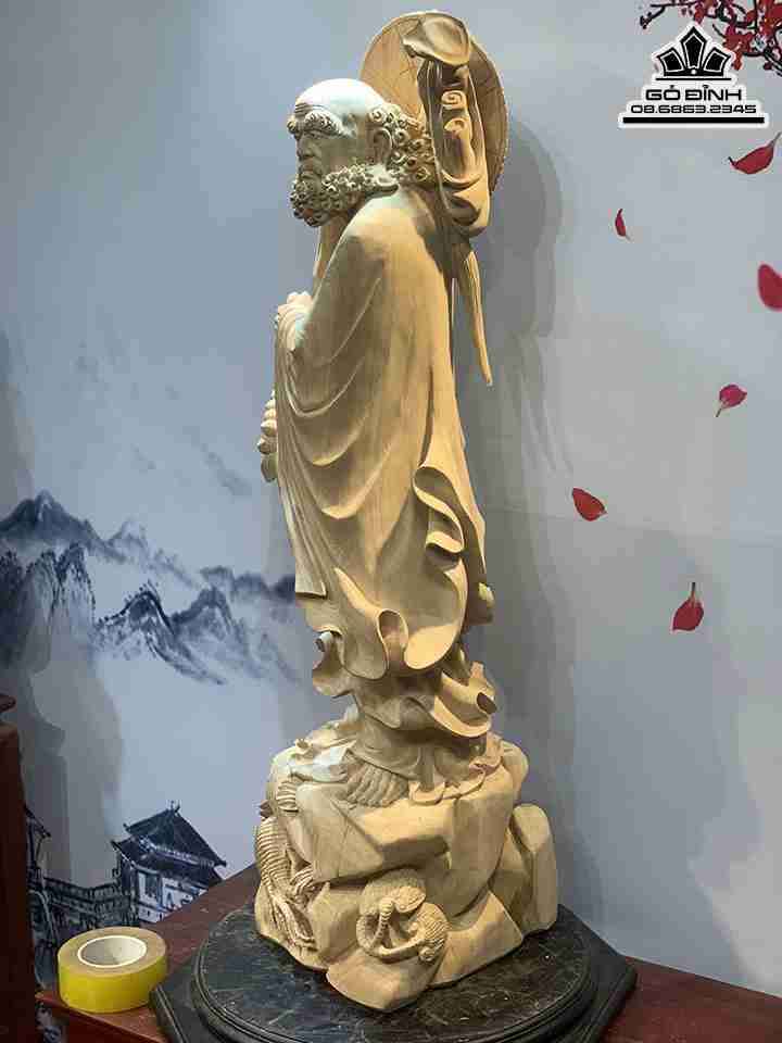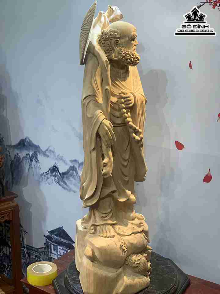 Tượng Đạt Ma Sư Tổ Giáo Hóa Gỗ Ngọc Am Cao 112 Ngang 43 Sâu 36 (cm)