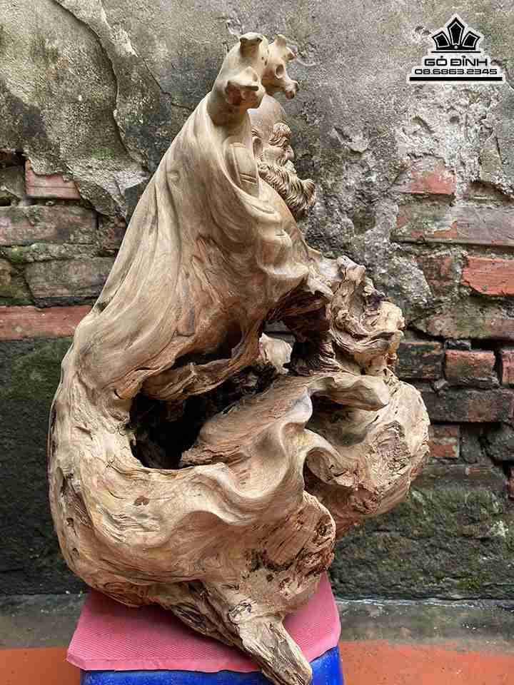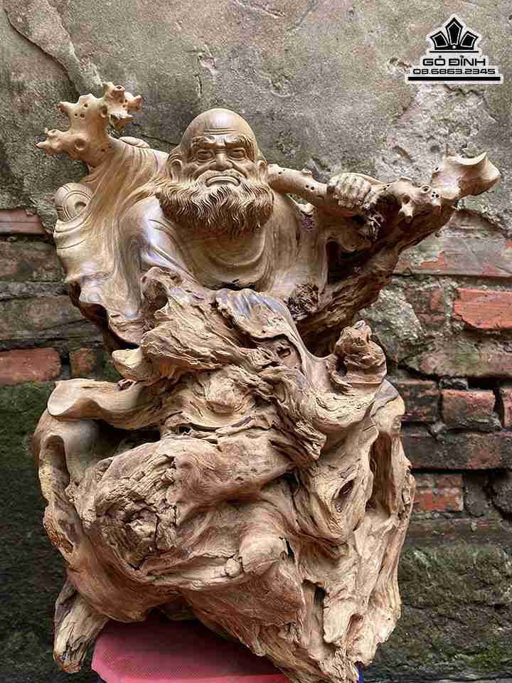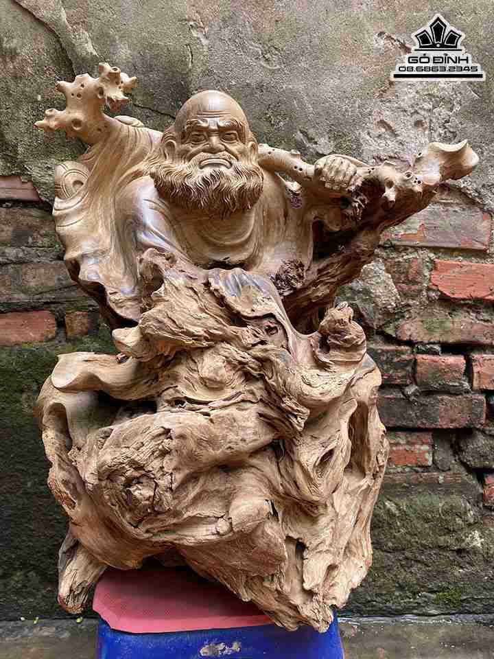 Tượng Đạt Ma Sư Tổ Giáo Hóa Gỗ Ngọc Am Cao 50 Ngang 39 Sâu 35 (cm)