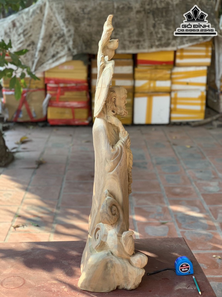 Tượng Đạt Ma Sư Tổ Giáo Hóa Gỗ Xá Xị (Gù Hương) Cao 97 Ngang 42 Sâu 25 (cm)