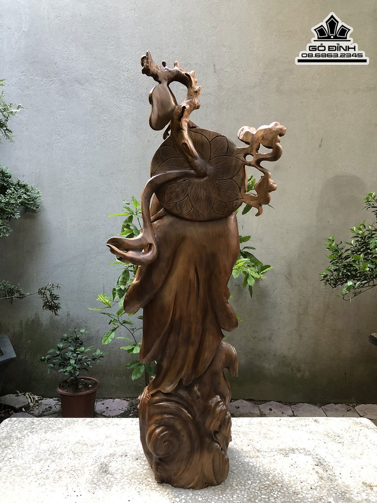 Tượng Đạt Ma Sư Tổ Gỗ Bách Xanh Cao 103 Ngang 40 Sâu 25 (cm)