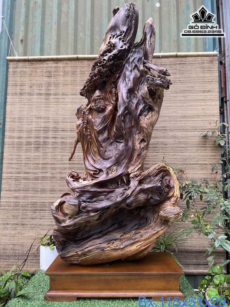 Tượng Đạt Ma Sư Tổ Gỗ Bách Xanh Cao 115 Ngang 51 Sâu 29 (cm)