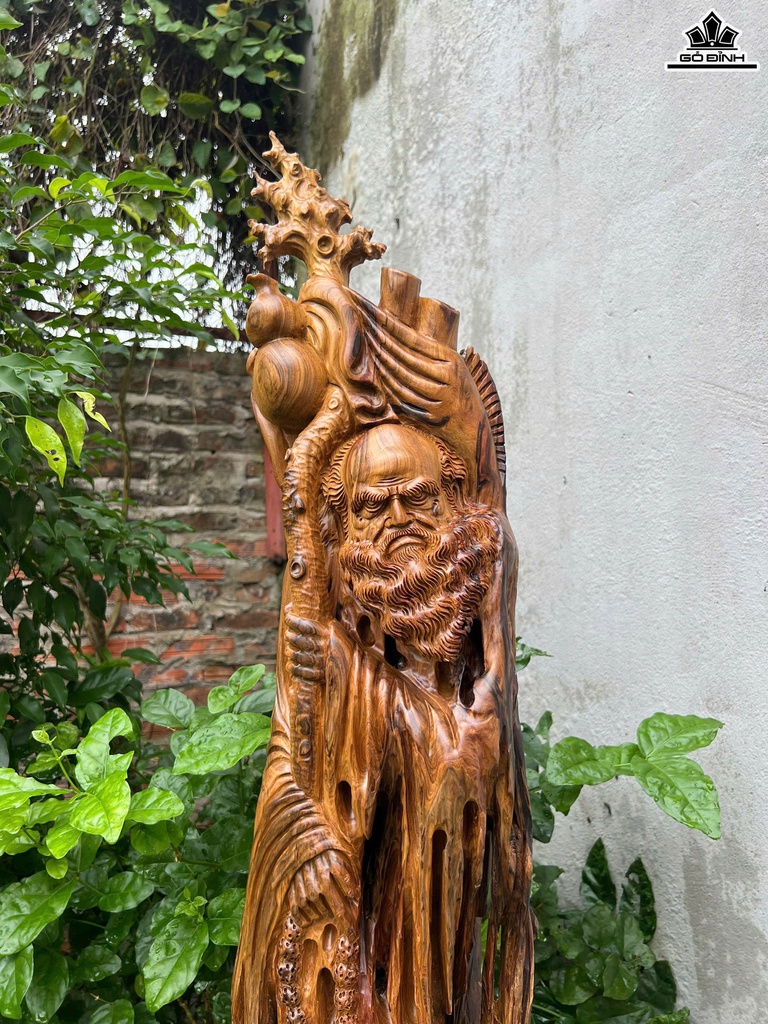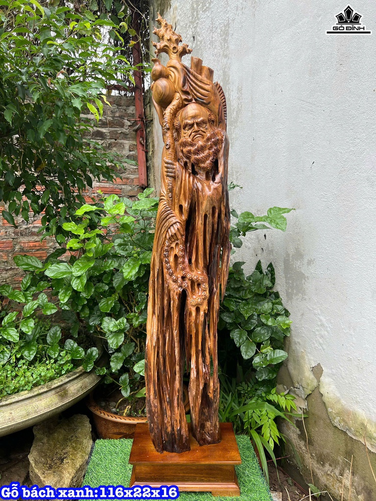 Tượng Đạt Ma Sư Tổ Gỗ Bách Xanh Cao 116 Ngang 22 Sâu 16 (cm)