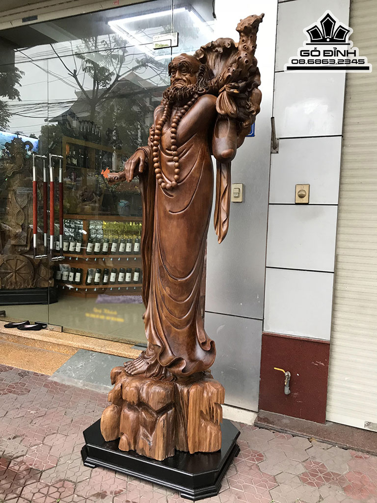 Tượng Đạt Ma Sư Tổ Gỗ Bách Xanh Cao 220 Ngang 75 Sâu 60 (cm)