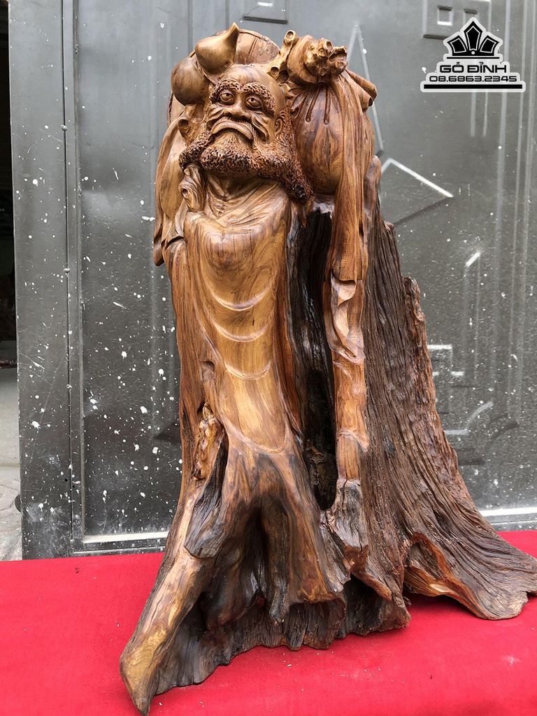 Tượng Đạt Ma Sư Tổ Gỗ Bách Xanh Cao 55 Ngang 49 Sâu 20 (cm)