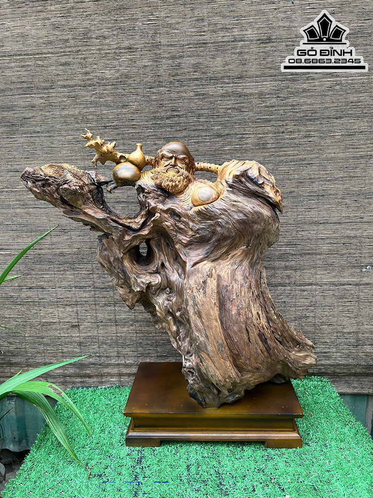 Tượng Đạt Ma Sư Tổ Gỗ Bách Xanh Cao 55 Ngang 59 Sâu 28 (cm)