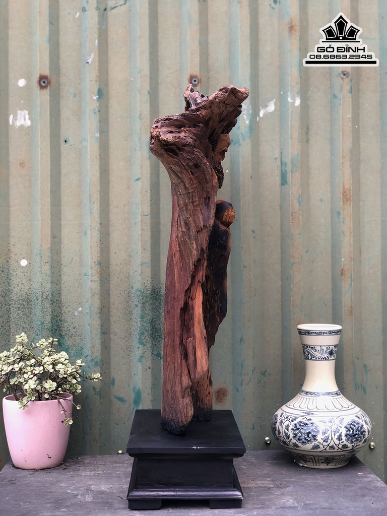 Tượng Đạt Ma Sư Tổ Gỗ Bách Xanh Cao 62 Ngang 38 Sâu 11 (cm)