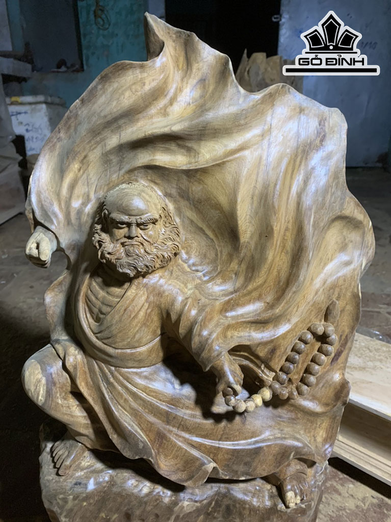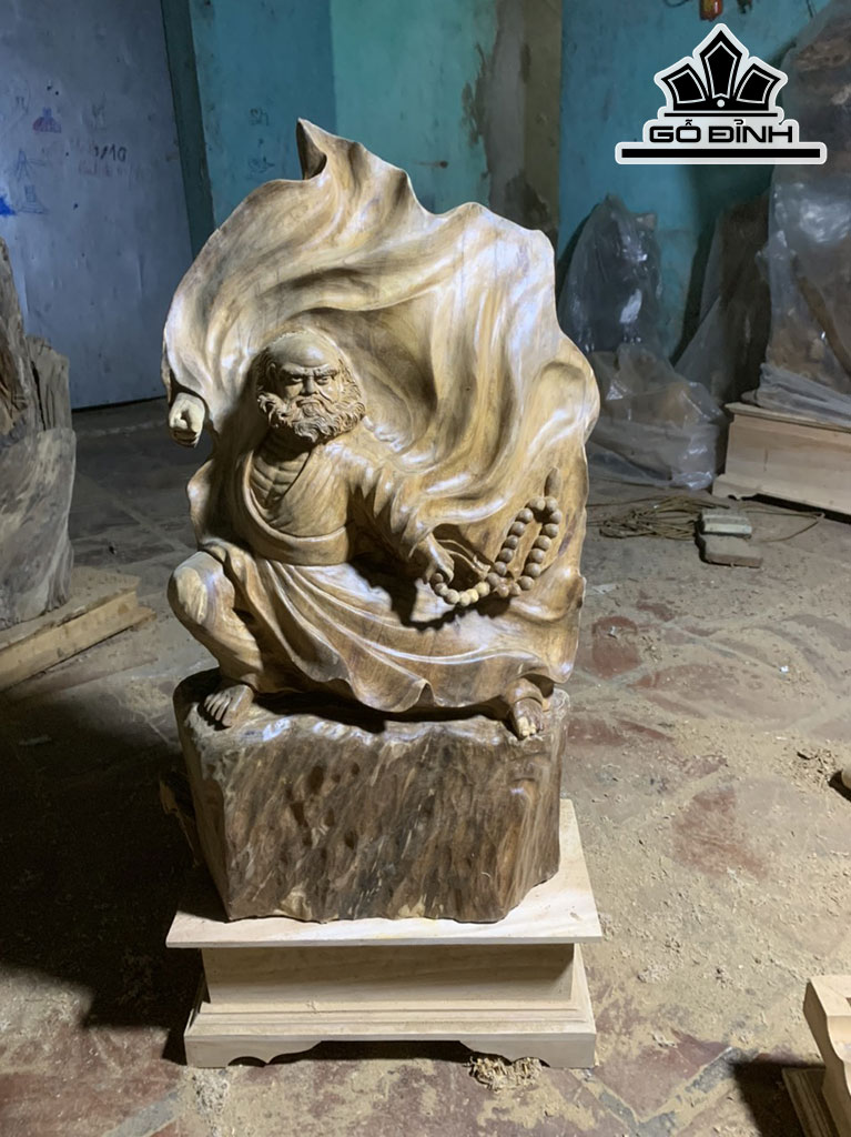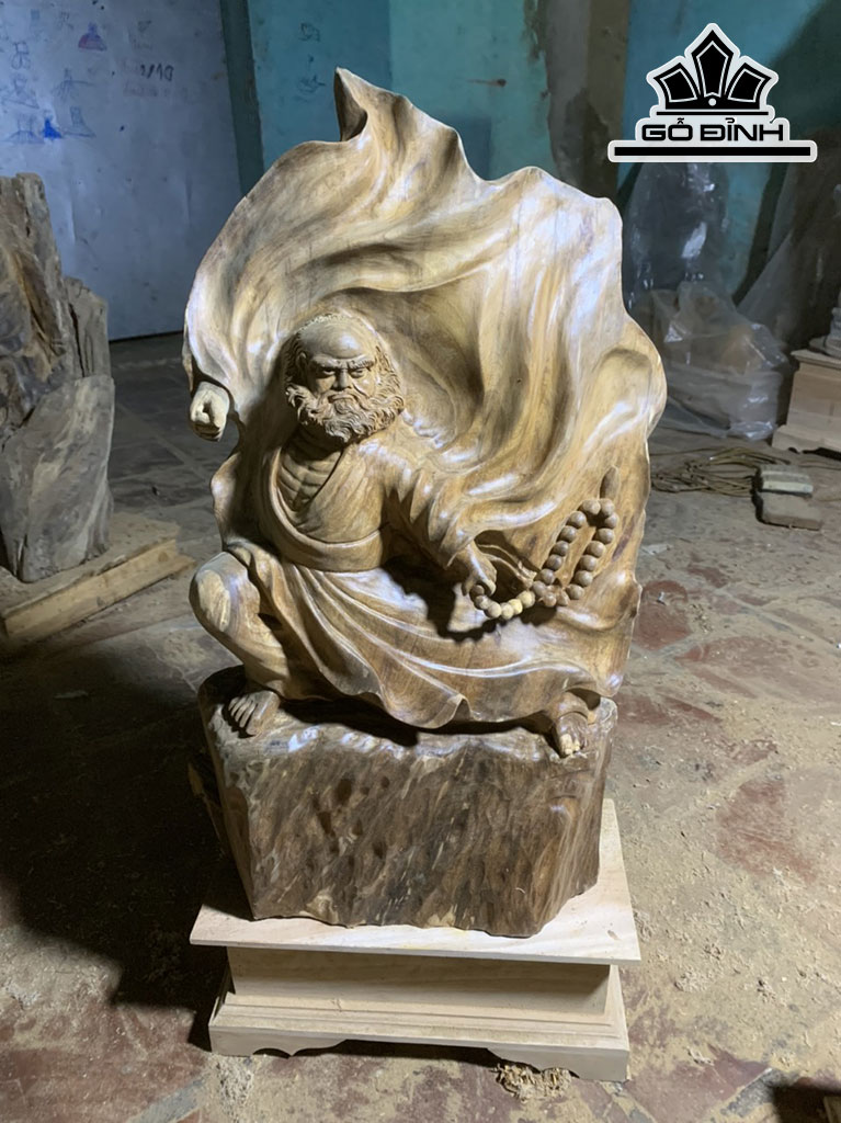 Tượng Đạt Ma Sư Tổ Gỗ Bách Xanh Cao 64 Ngang 35 Sâu 10 (cm)