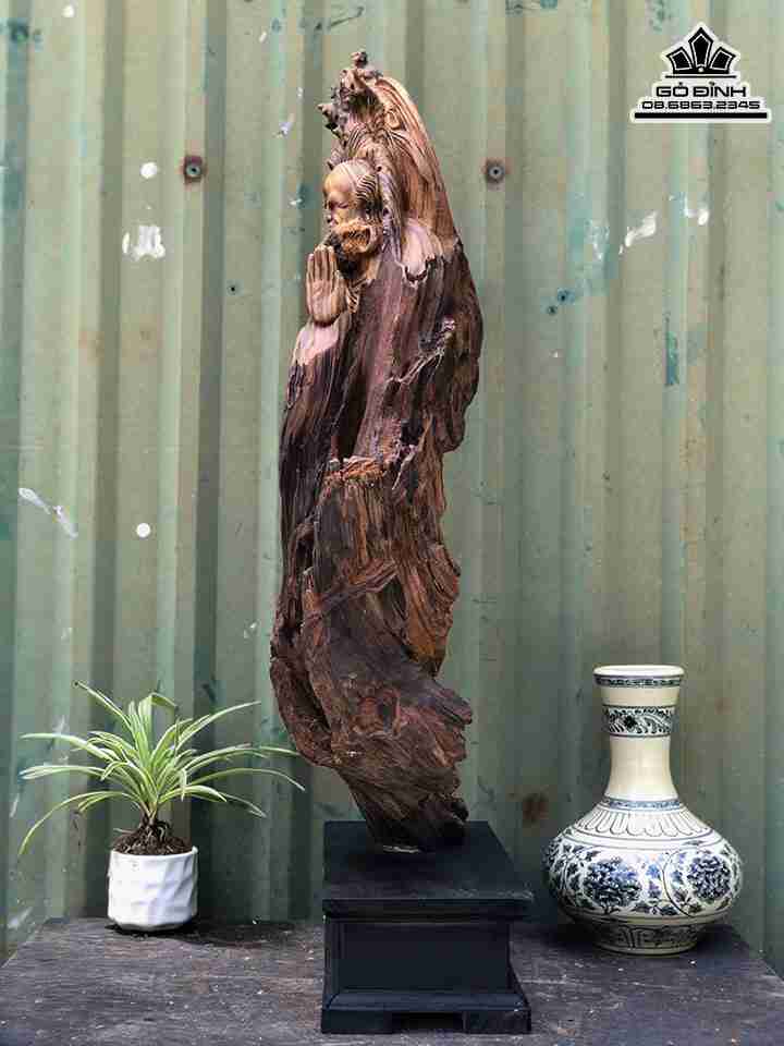 Tượng Đạt Ma Sư Tổ Gỗ Bách Xanh Cao 70 Ngang 33 Sâu 19 (cm)