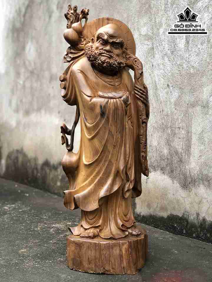 Tượng Đạt Ma Sư Tổ Gỗ Bách Xanh Cao 76 Rộng 28 Dày 25 (cm)