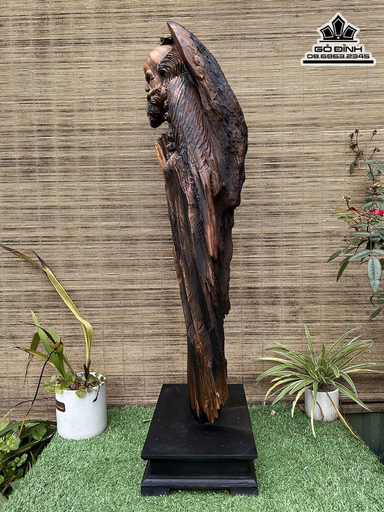 Tượng Đạt Ma Sư Tổ Gỗ Bách Xanh Cao 79 Ngang 28 Sâu 15 (cm)