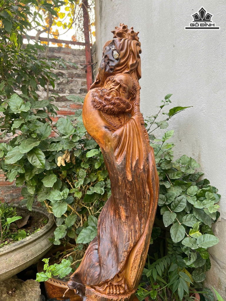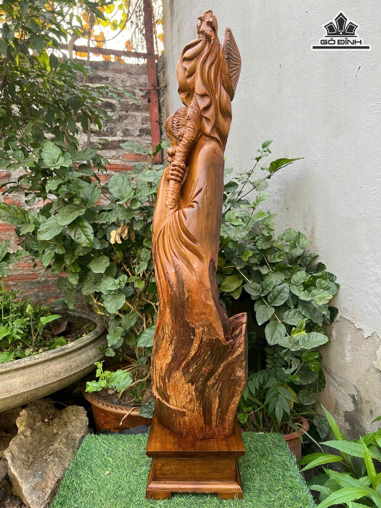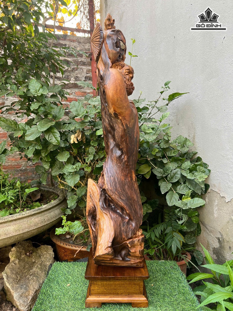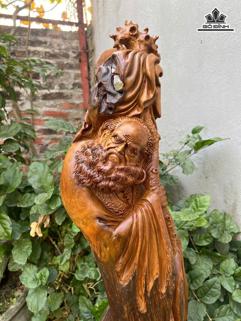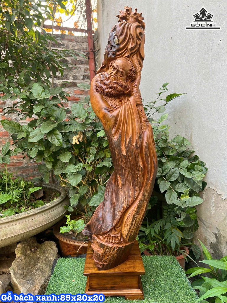 Tượng Đạt Ma Sư Tổ Gỗ Bách Xanh Cao 85 Ngang 20 Sâu 20 (cm)